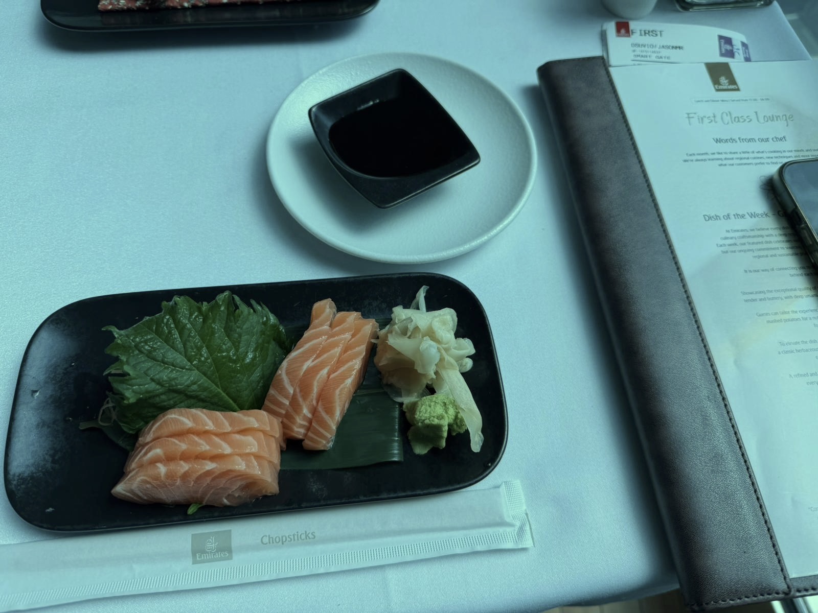 For lunch, I had a selection of mezze and sashimi before leaving the lounge to board my flight.