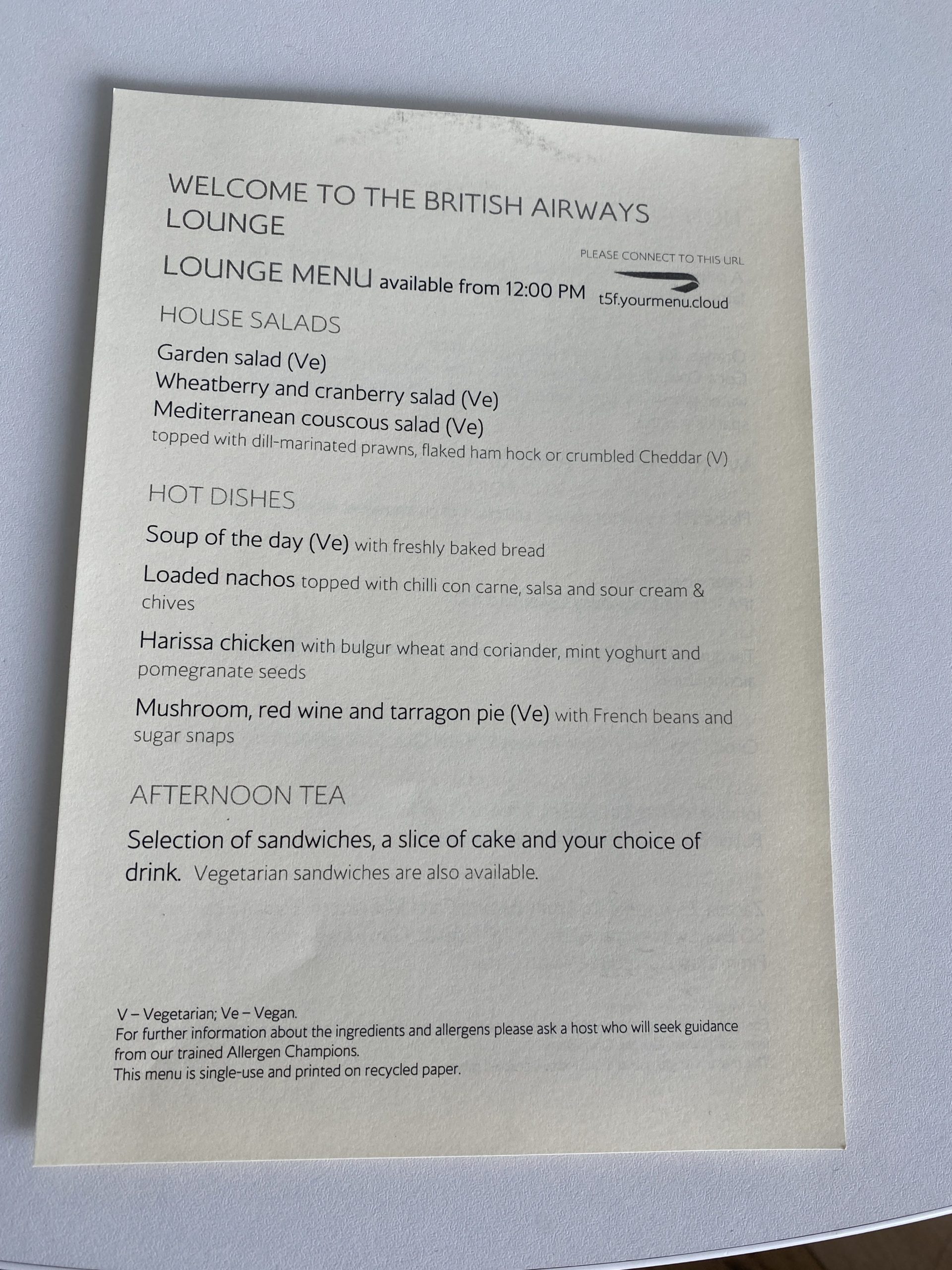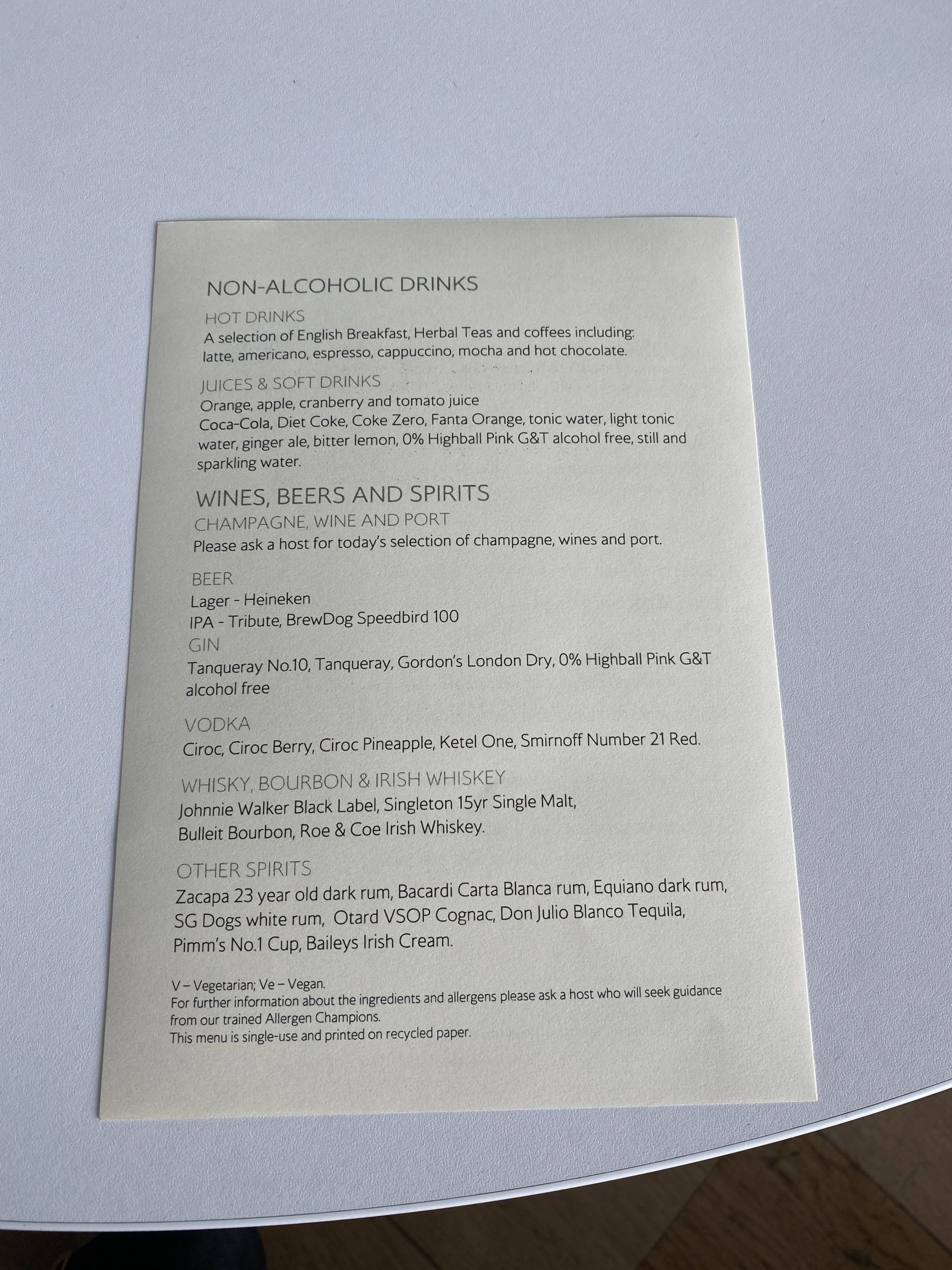 Compared to the previous Concorde Room, the menu is a bit sparse and the same as in the First lounge.