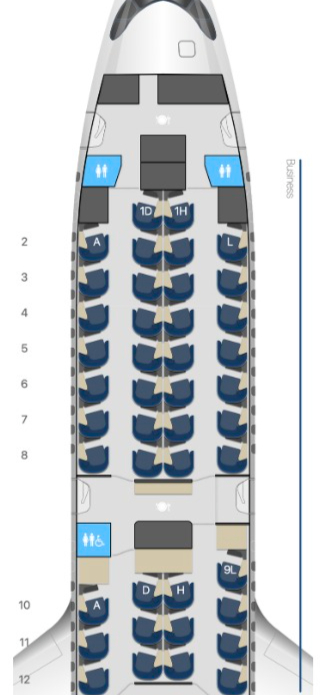 For the A350, the seats are the same all the way through the cabin, so there are no real bad seats. However, I would recommend the front row for a day flight or if noise does not bother you as the footwell is much bigger for these and does not have the metal bar that the others have. They are close to the galley and toilets so there will be some noise here. For the same reason, seat 9L also can be disturbed by the galley and is also next to where the crew store their bags. It is more private than other seats, but you may get disturbed on a night flight.