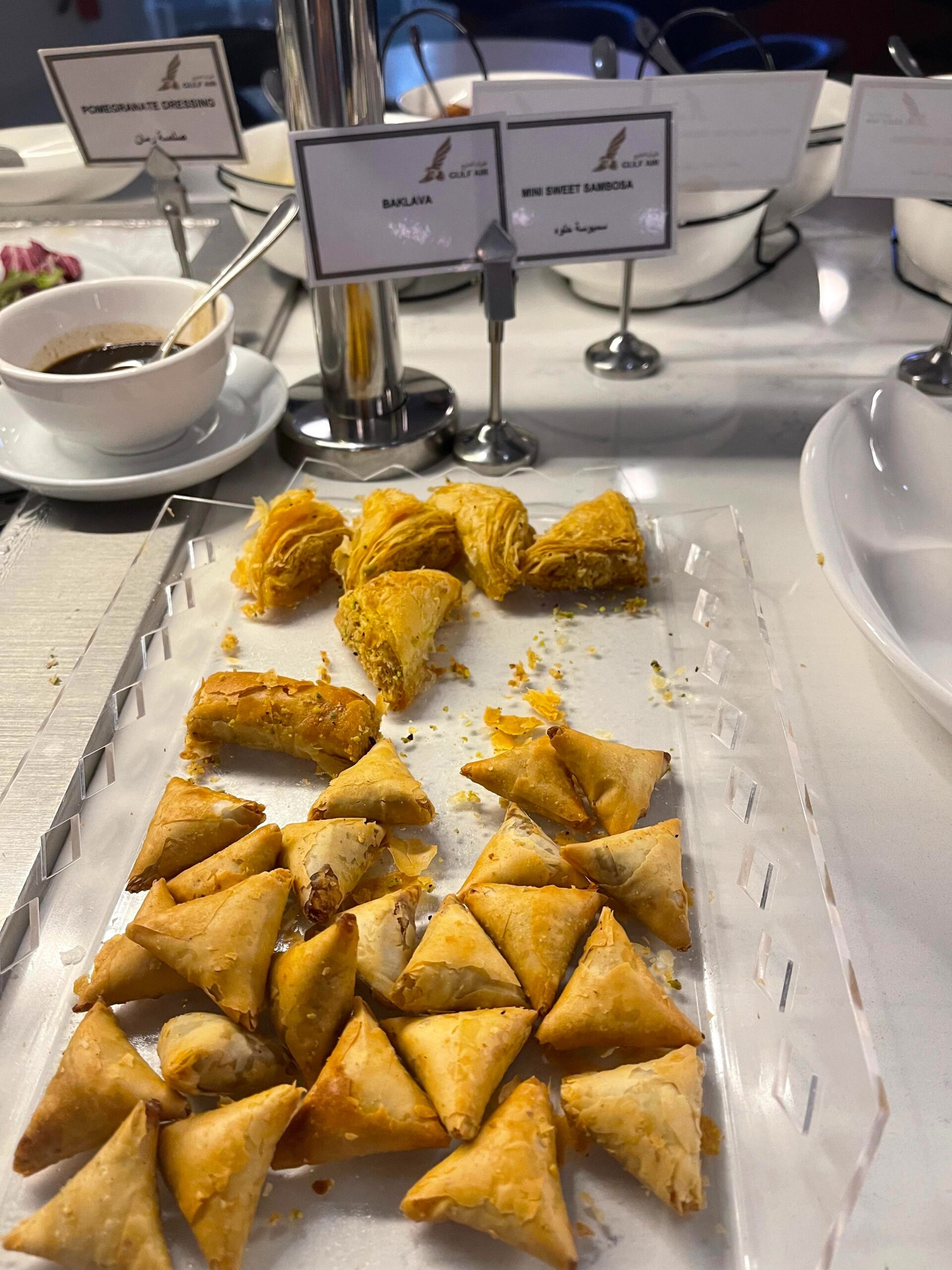 Wow. Bahrain International Terminal 1 is a lovely and modern little facility and so it should be as it only opened in 2021. Obviously, the overwhelming majority of passengers using BAH are in transit and the terminal has been designed around that. The airport is light and airy, security is super easy with the latest scanners (nothing out of bags) and despite the delay to our inbound flight now leaving us very short in terms of boarding our next flight, I made sure I ran into the Gulf Air lounge to grab a few snaps. I cannot comment any more on the lounge, unfortunately as my visit was about exactly three minutes in duration 😊