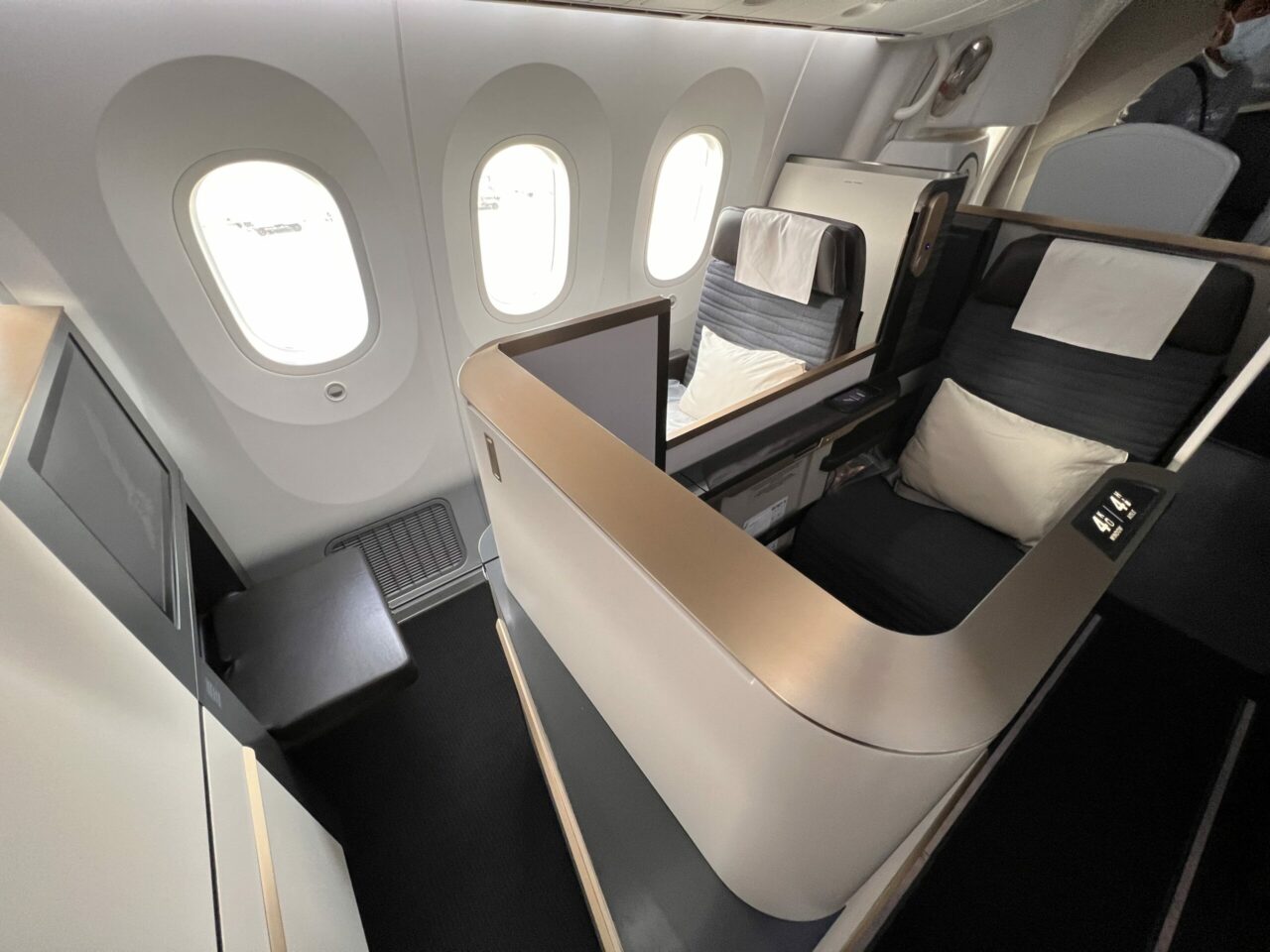 Unlike BA’s Club Suite, there is no door, but the airline has managed to achieve a sense of privacy, especially with seats closest to the window. The design of the seating layout is staggered so all passengers can access the aisle without stepping over their neighbours – which isn’t the case with the similar layout on British Airways’ older Club World product.