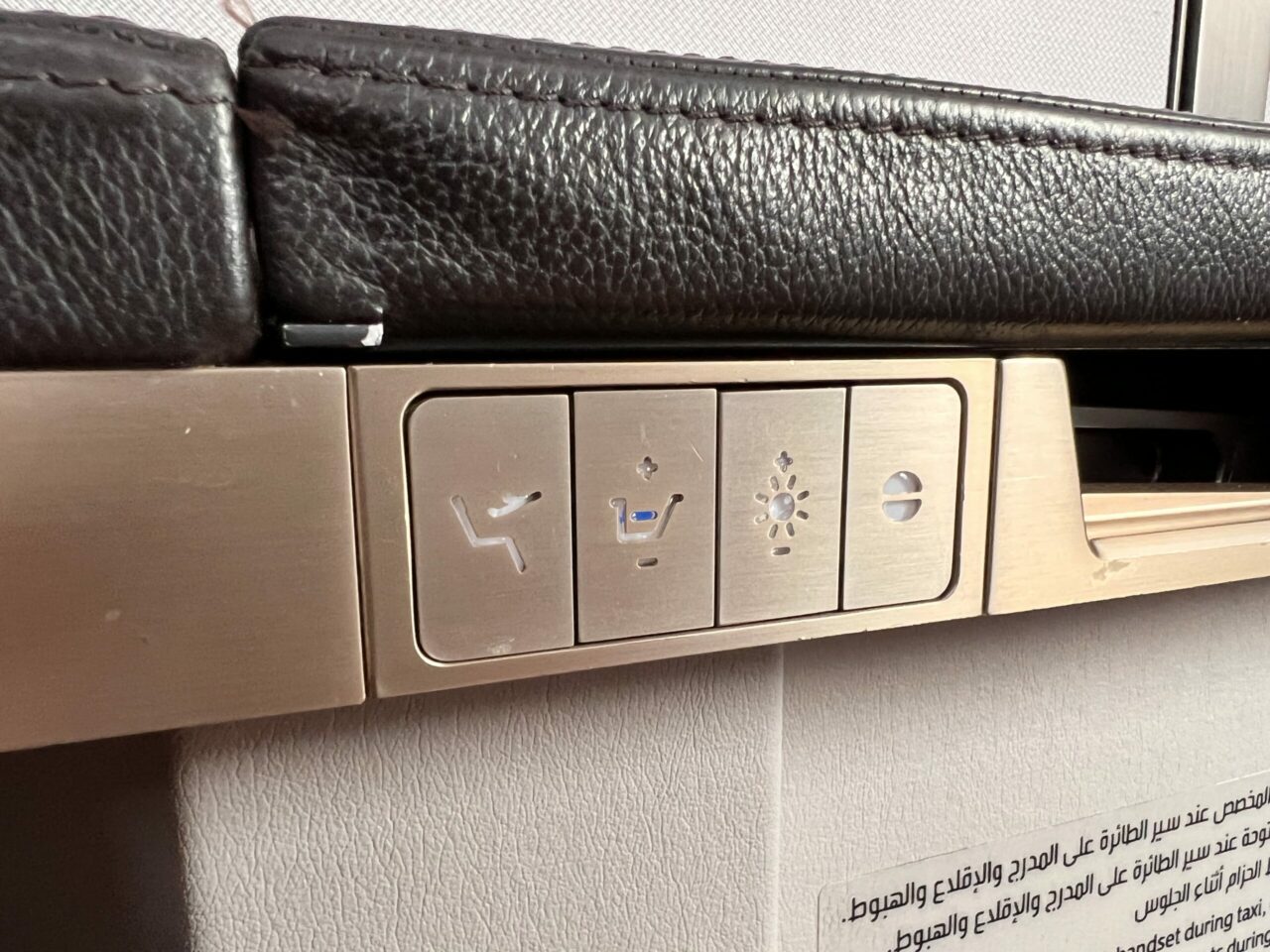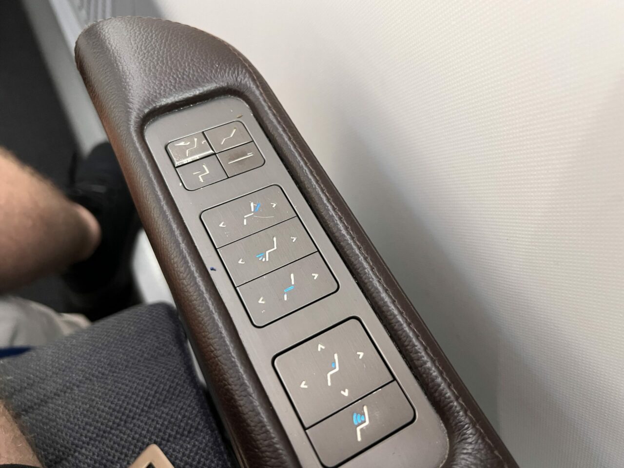 There’s a true plethora of buttons at your fingertips, too, for control of the seat and the surrounding suite lighting, which looks excellent in a darkened cabin. The larger button set is a little awkwardly placed on the armrest, though.