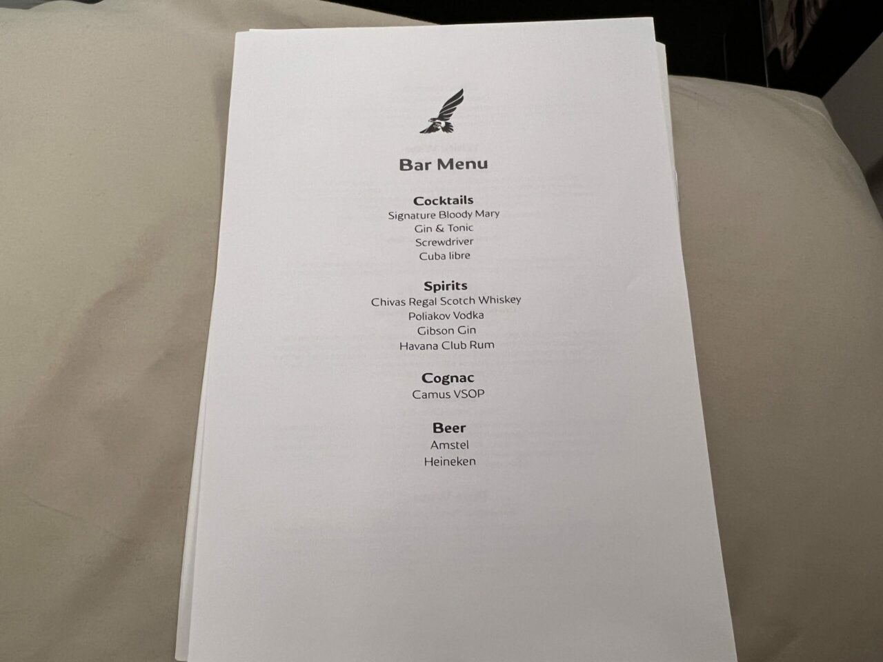 Gulf Air provides basic menus for your perusal. Gulf Air is not a dry airline, so if you’re into champagne as your pre-departure drink, you’ll easily be able to get a couple of glasses. The airline provides a fairly extensive selection of alcoholic and soft drinks, which appeared to be the same selection on both flights.