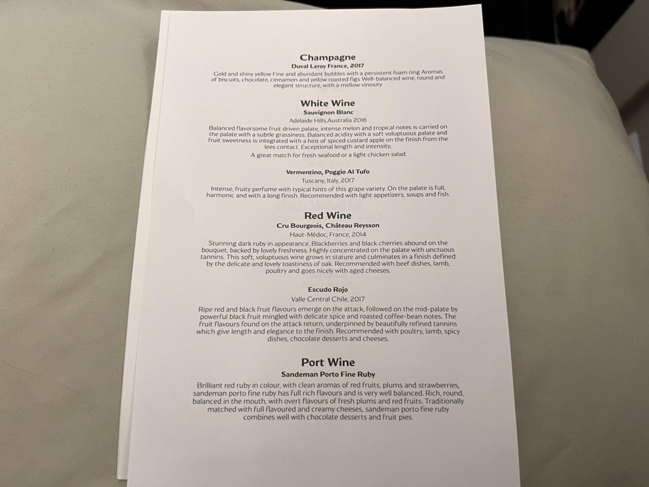 A 2017 bottle of Duval Leroy champagne was served on both my flights.