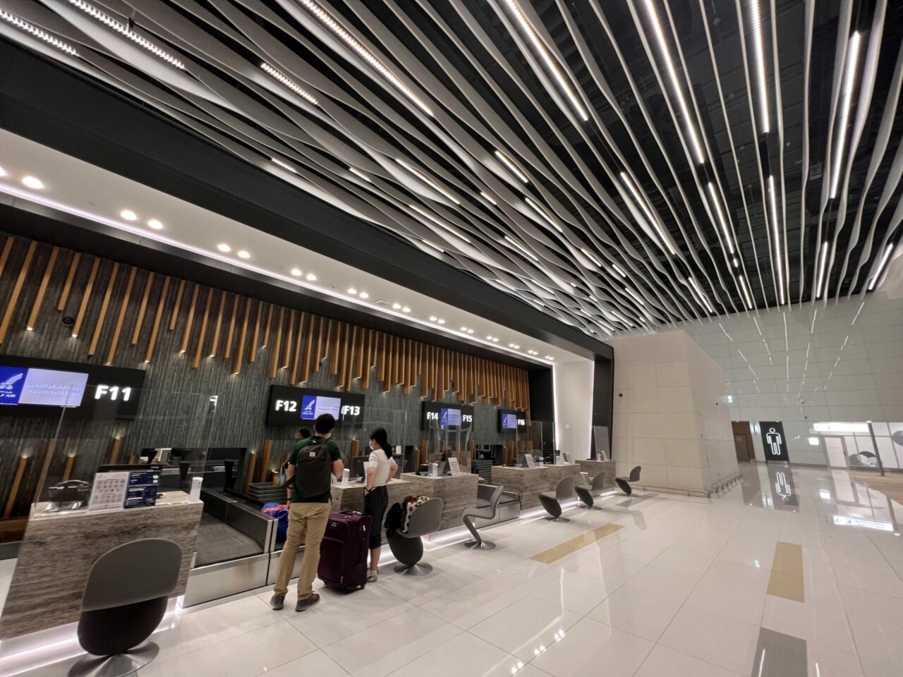 Bahrain International Airport opened its new terminal in 2021, which made it practically brand new during my trip in July 2022, thanks to the pandemic. From the outside, the airport is modern and clean, with several drop-off points for each airline as well as a premium check-in area for ‘Falcon Gold’ Business Class passengers. This is similar to many airports, such as Istanbul and Doha, which makes the experience a bit more exclusive.