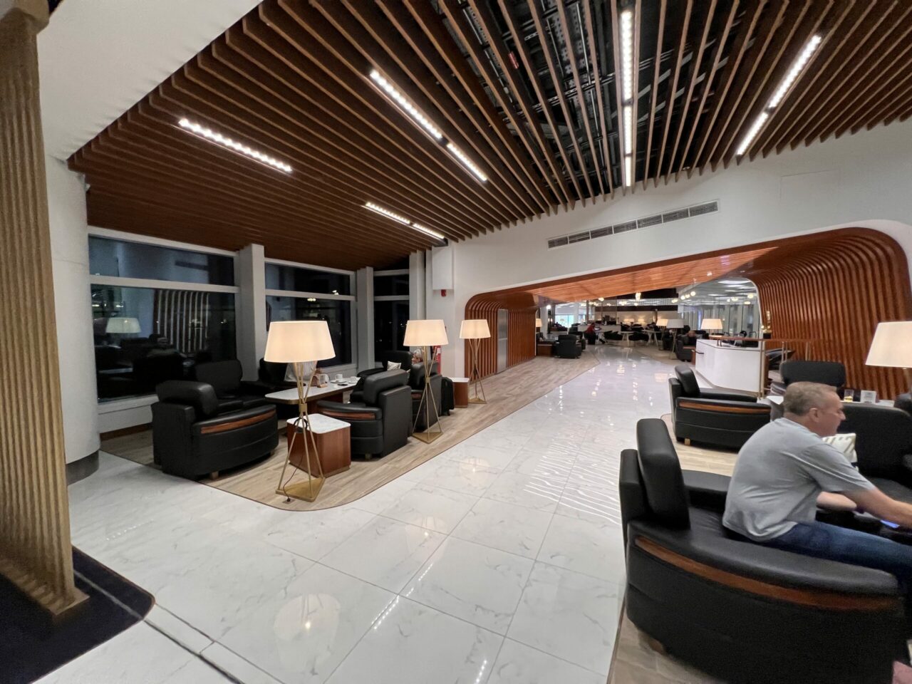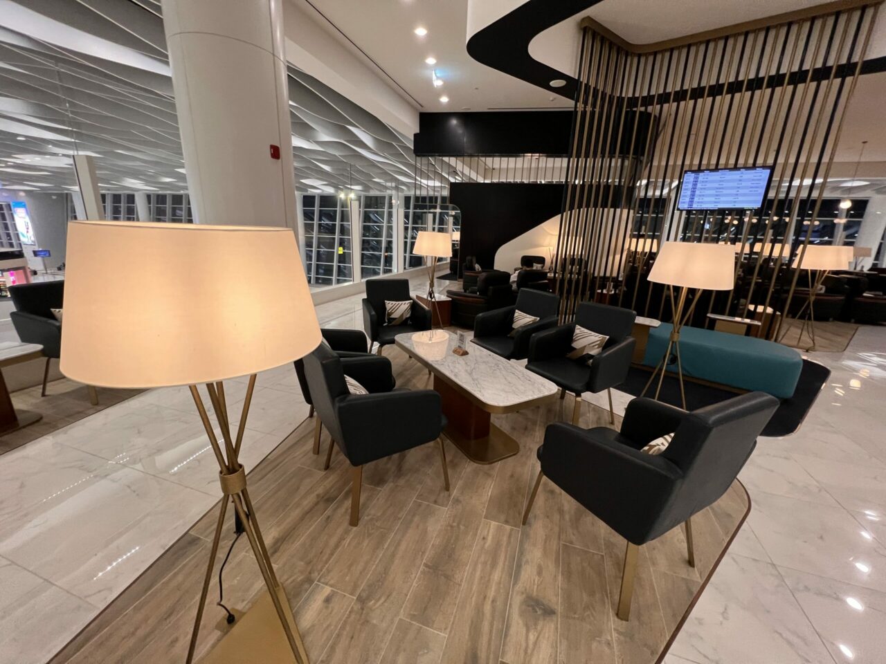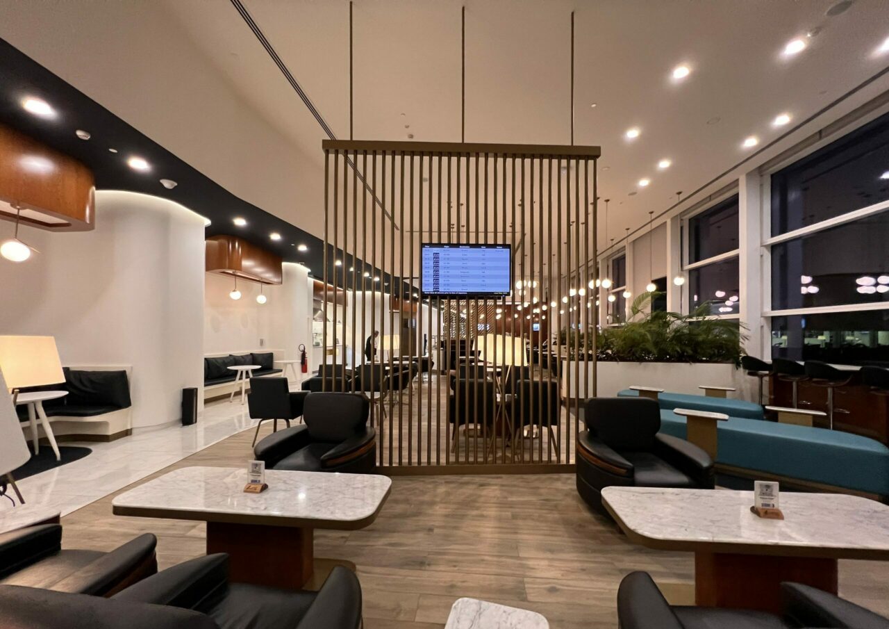 Heading into the other primary part of the lounge, the main concourse will be where most passengers will spend their time. Here, there’s pretty much any seating type you’d need – tables, solo chairs, sofas, etc.