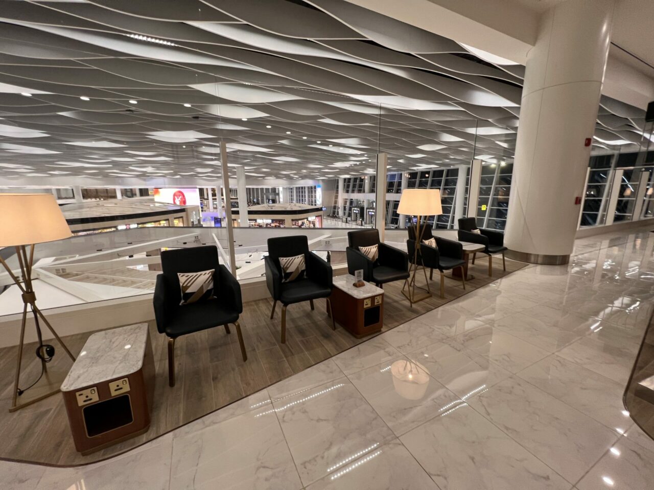 The terminal is large and airy, with an interesting lighting installation that makes it a bit more interesting to look at than most glass and steel terminals. To the right of this unattended reception area is the Business Class check-in, which had minimal waiting times. The addition of the chairs are nice, but I don’t think I actually saw anybody use them.