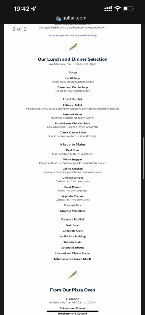 For a Business Class lounge, the Gulf Air Lounge offering has one of the more impressive offerings I’ve seen from an airline. Firstly, the breadth of options is outstanding, as seen on the menu: