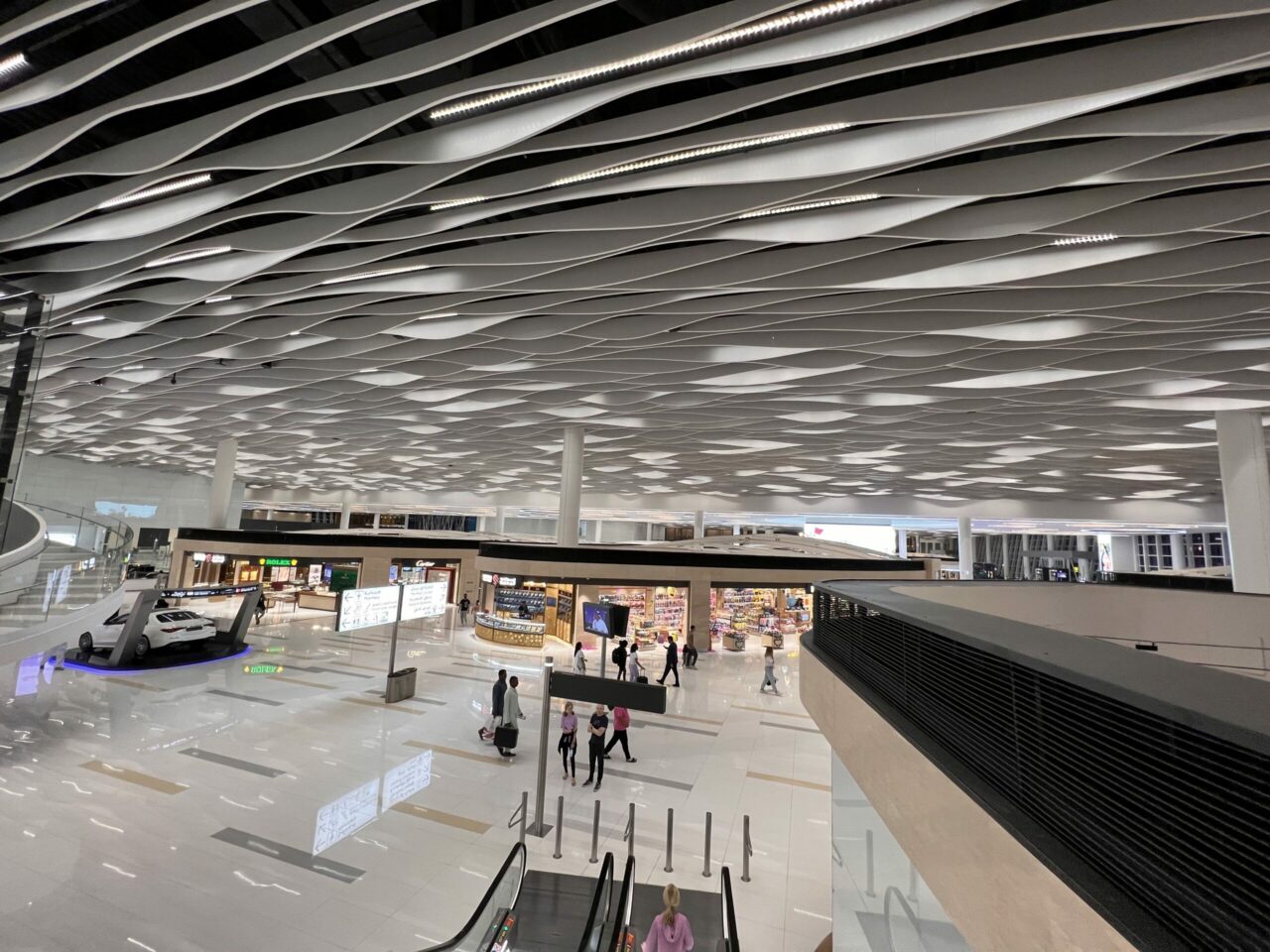 Once through, you’ll be greeted by a central atrium flanked by numerous expensive shops. Signage for the Falcon Gold Lounge is displayed throughout the terminal, making it easy to find.