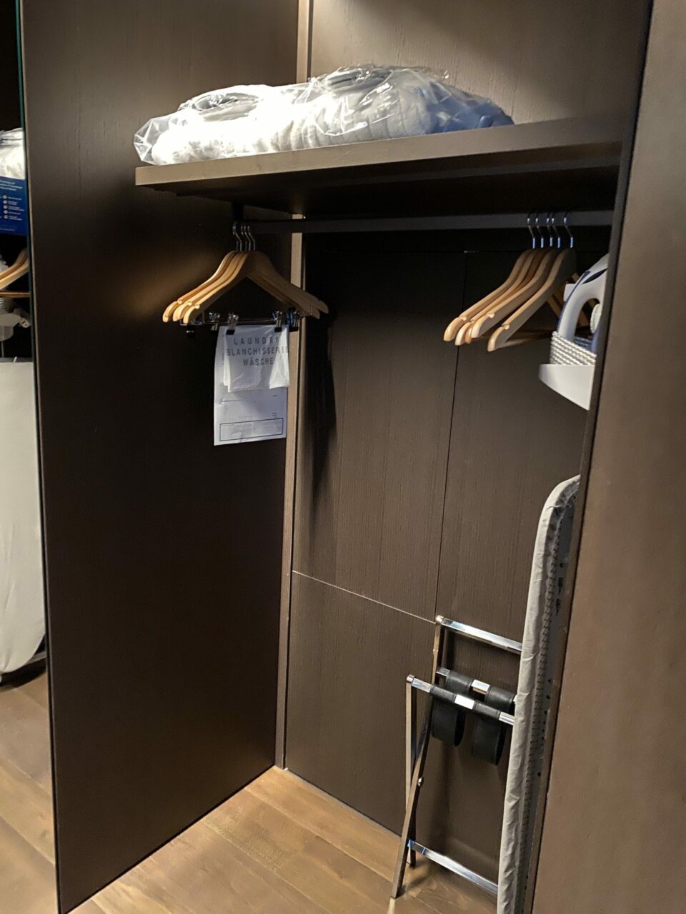 I liked the sculpture of the shirt collars on display. The fridge was empty so you could store your own drinks if you wanted. There was TV and coffee as well as two bottles of mineral water.
