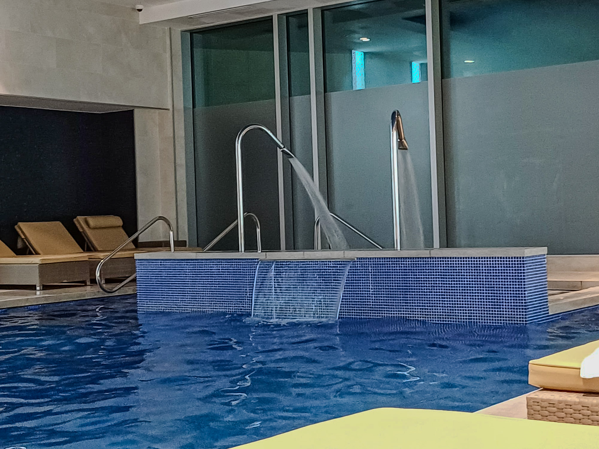 The spa and pool was one of the reasons I specifically booked this hotel over some of its neighbours, and I did enjoy the facilities very much. The pool was one of London’s larger ones – in terms of both length and width. It also had some comfortable poolside lounging options, not too much chlorine, and was heated to a decent level, which isn’t always the case! The pool also had a ‘relaxation pool’ attached at the back (not sure why it wasn’t formally classified as a jacuzzi), which had water beds, a massage waterfall and bubbles.