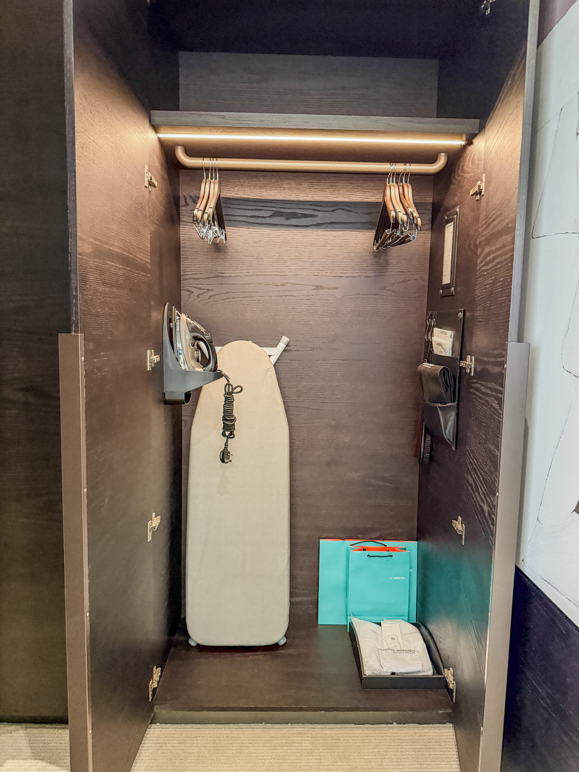 The bathroom is modern with a double sink, and plenty of storage, a bath, roomy shower, toilet and bidet. The amenities are Malin and Goetz, which aren’t my favourite, but they’re still a nice brand.
