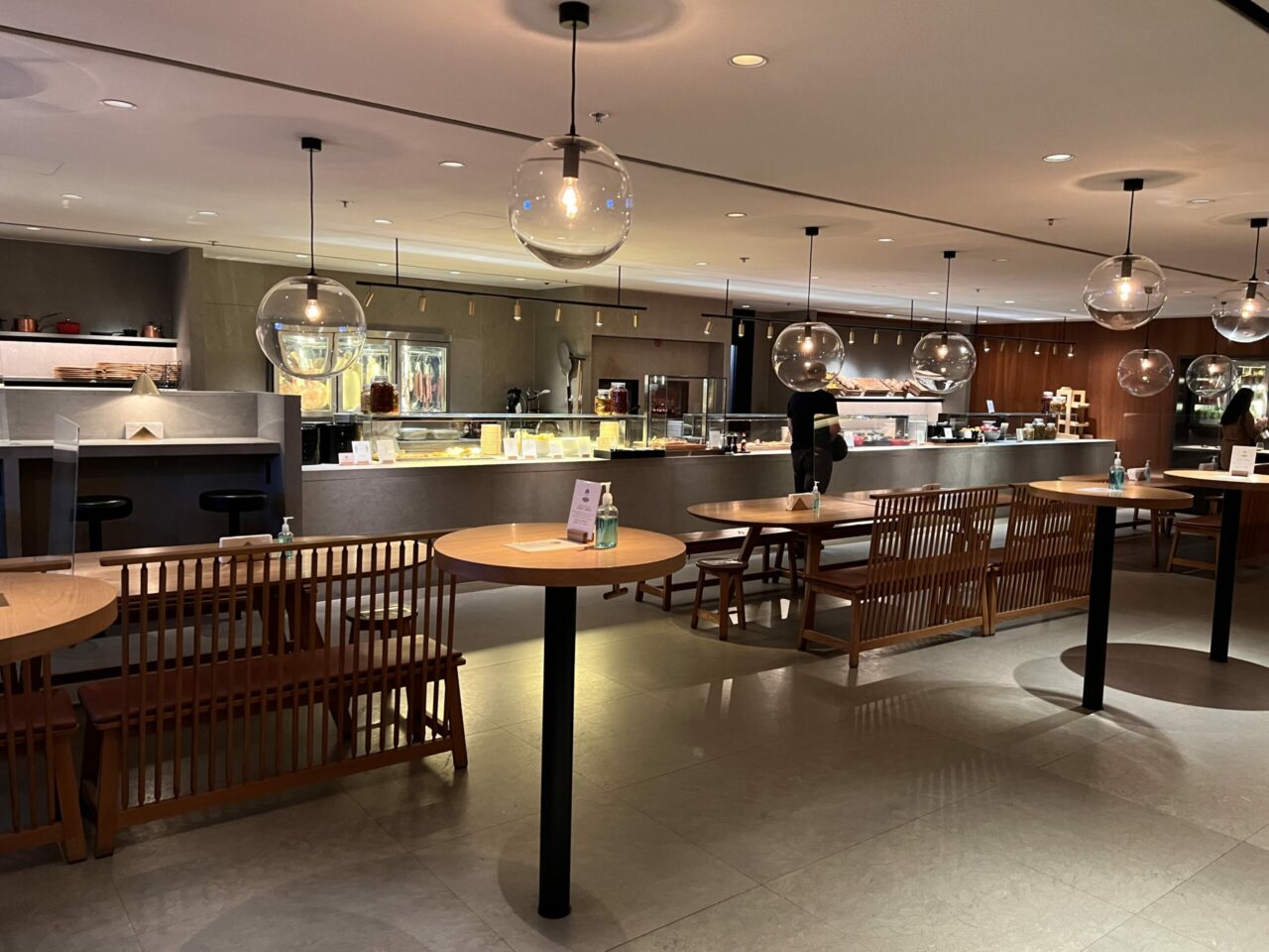 After reception, where the lounge staff warmly greeted me, the first are you walk into is the Food Hall. While I suspect this was self-serve pre-2020, at the time of visiting lounge staff served onto a plate what you requested. I don’t mind this practice because it does improve cleanliness and self-serve buffets are often not the best experiences with some greedy passengers.