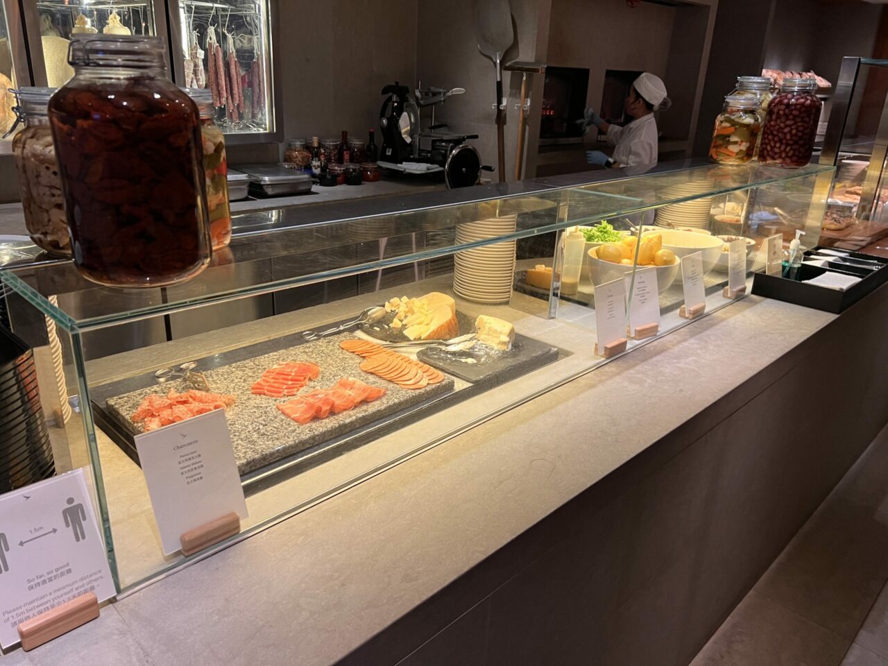 The food selection of Cathay Pacific’s ‘The Pier’ Business Class Lounge here was good and consisted of mostly non-Asian dishes such as pizza, focaccia, meatballs and charcuterie boards. While the meatballs were of average quality, the pizza and focaccia impressed particularly with the genuine pizza oven directly in the lounge. The latter is surprising considering many airports do not allow open flames – however that doesn’t appear to be the case at HKIA.