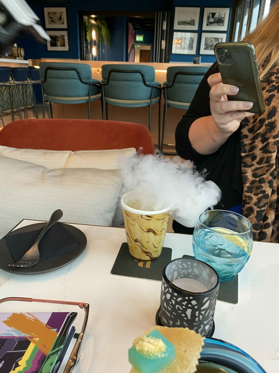 I tried the Marketa and Katie went with the Aqua Vita. It came with a fun flavour ballon that popped into a smoke over the drink.