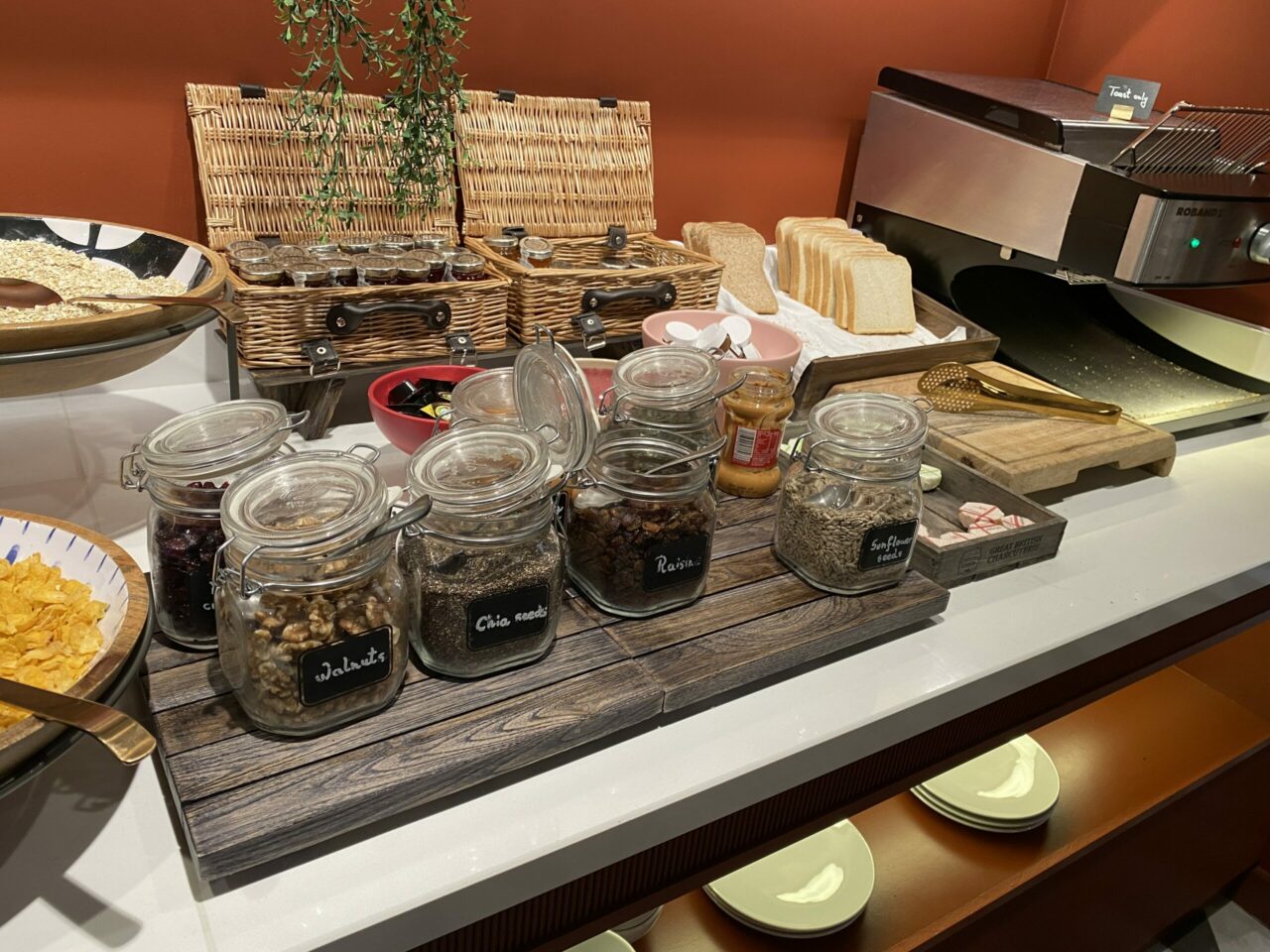 Breakfast again was more than I expected from a select-service hotel. There was a good variety of everything from waffles and a full English to fruit and high-quality yoghurts. You could get eggs cooked to order such as fried, poached or an omelet. Attention to ingredients had obviously been paid as there were things such as good quality jams like Wilkin and Son’s jam, a choice of salted or unsalted butter, and Marmite and Nutella for your toast. Their fresh fruit was ripe and tasty too.
