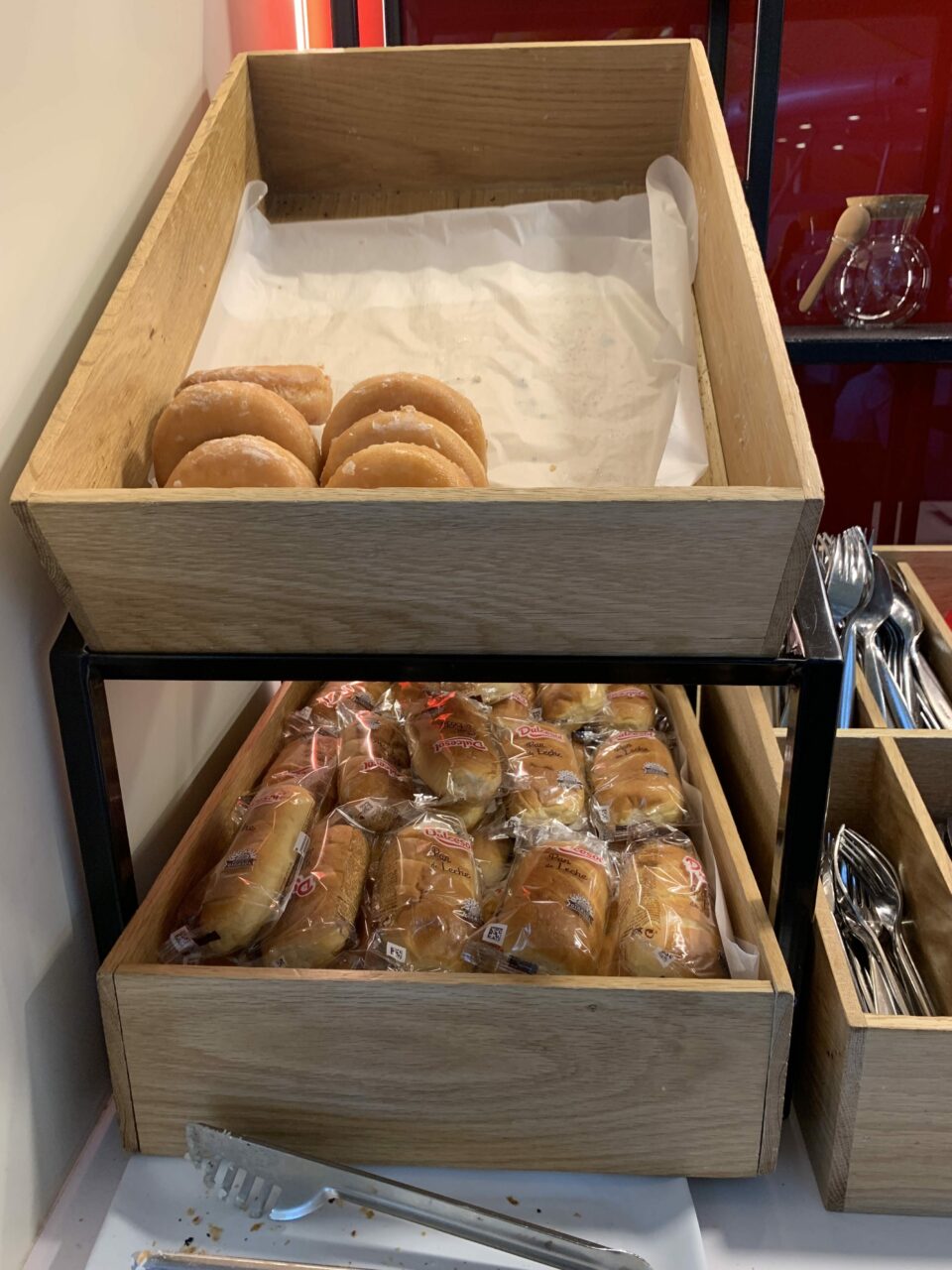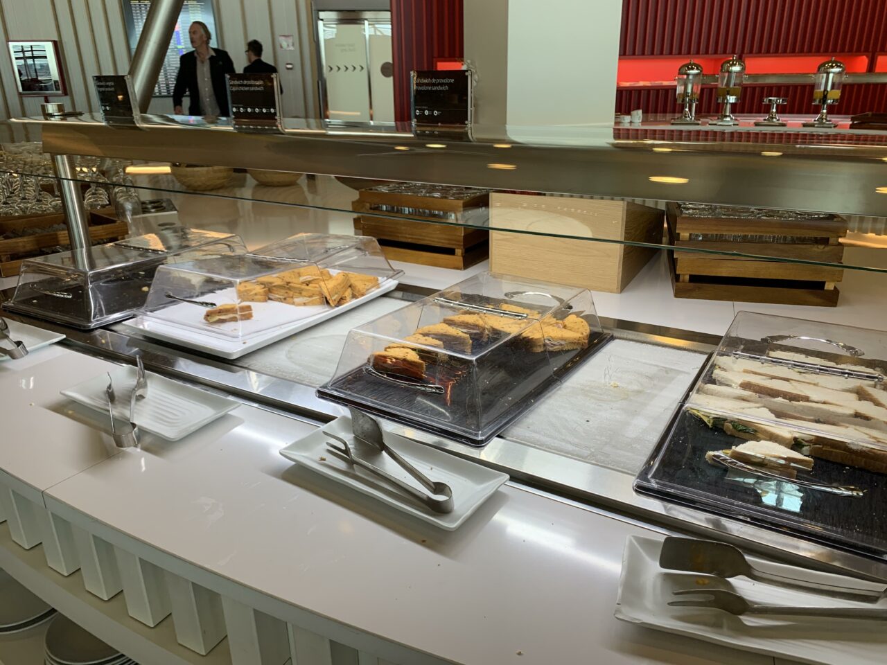 Thankfully there was no shortage of seating and the lounge felt light, airy and spacious. For me, this is where Iberia win over BA’s home Club lounges at T5. They are often very busy and feel a bit cramped and dark in places. However, BA definitely wins on food in the lounge. The selection was frankly dismal. Part of this is due to the fact that in Madrid they eat lunch very late, so despite the fact that it was around 12.30pm it was apparently mid-morning to them! There were a few breakfast things such as pastries, yoghurt and bread. The only other food was a small selection of sandwiches. I thought this was pretty poor. Many of the things were also nearly empty and they seemed quite slow to top them up.