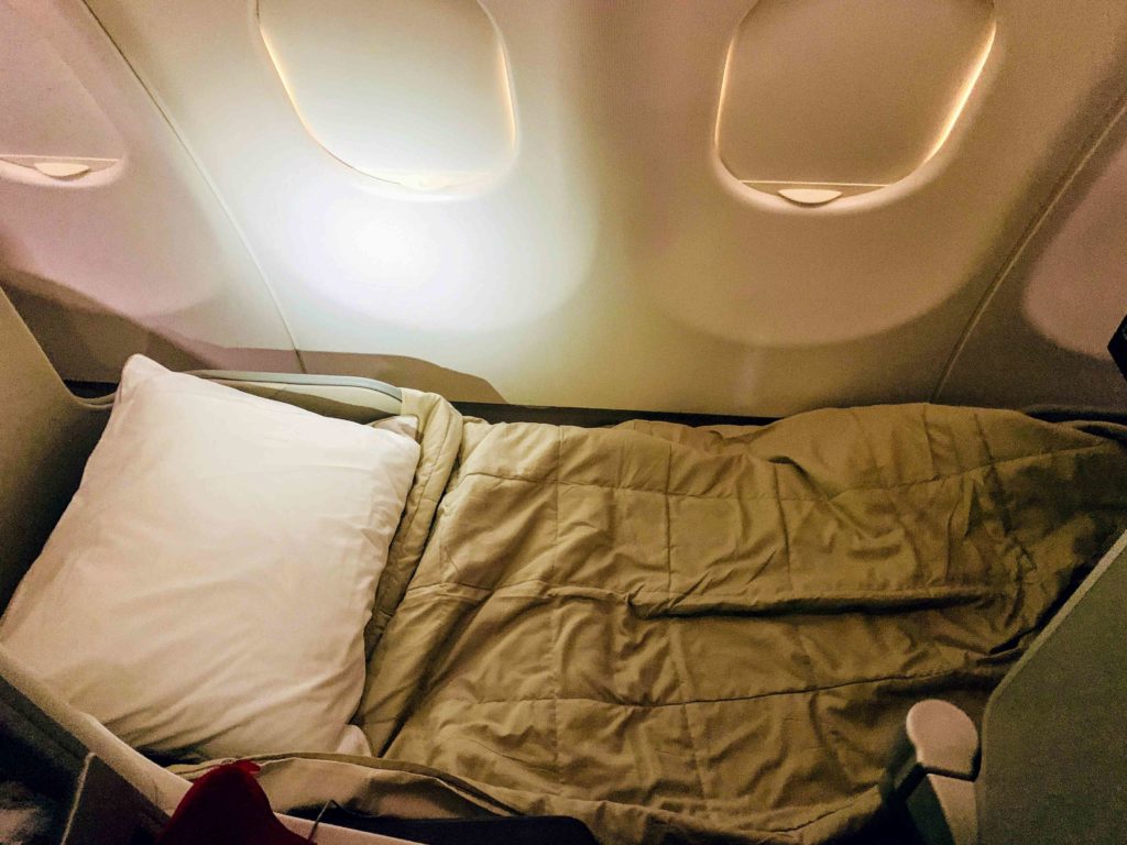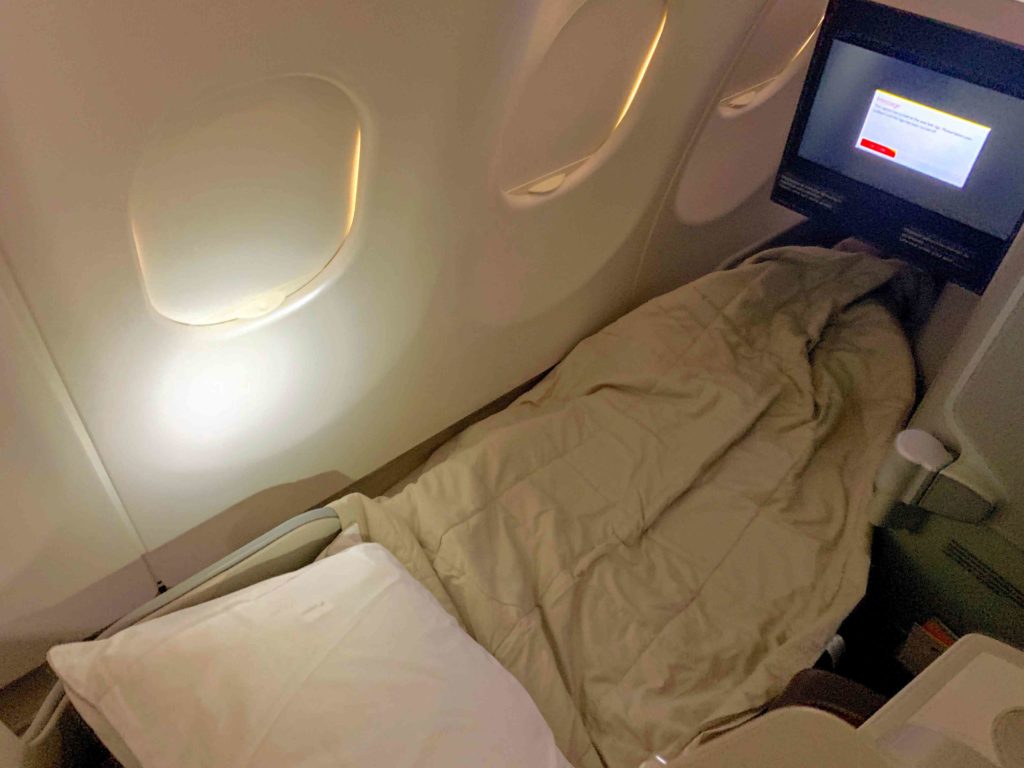 I found the seat quite comfortable in the bed position and with enough room to rest or sleep comfortably. Many airlines A330s feature narrow seats but these felt quite wide.