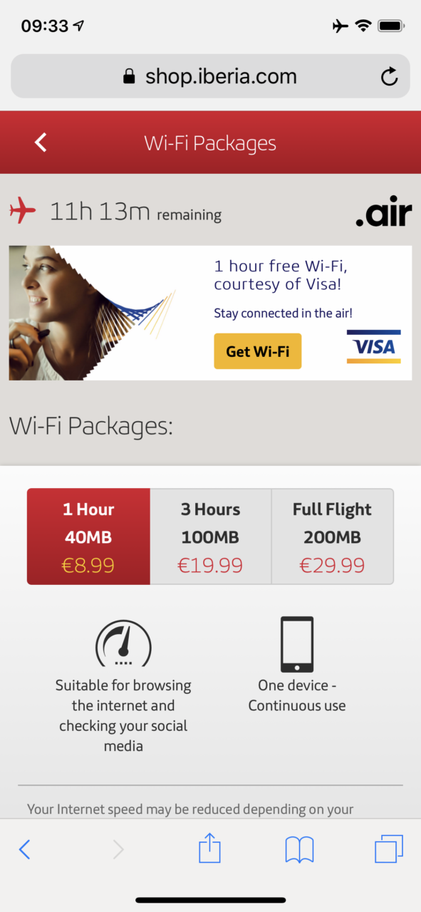 There was supposed to be Wi-Fi or whiffy as they pronounce it, but sadly it did not work for virtually the whole flight. I find Iberia Wi-fi expensive and quite average with a slowish speed when it does work. It seems prone to being temperamental.