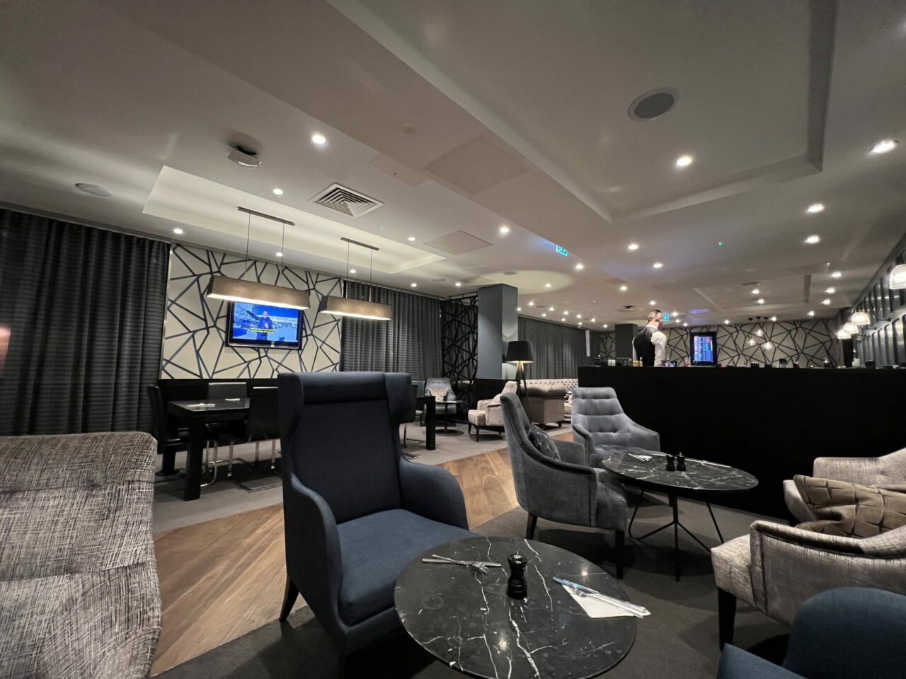 A bar, that had two staff during my morning visit, splits the lounge into two main areas – although the seating around it is all living room style. The lounge does not offer barista-made coffee.