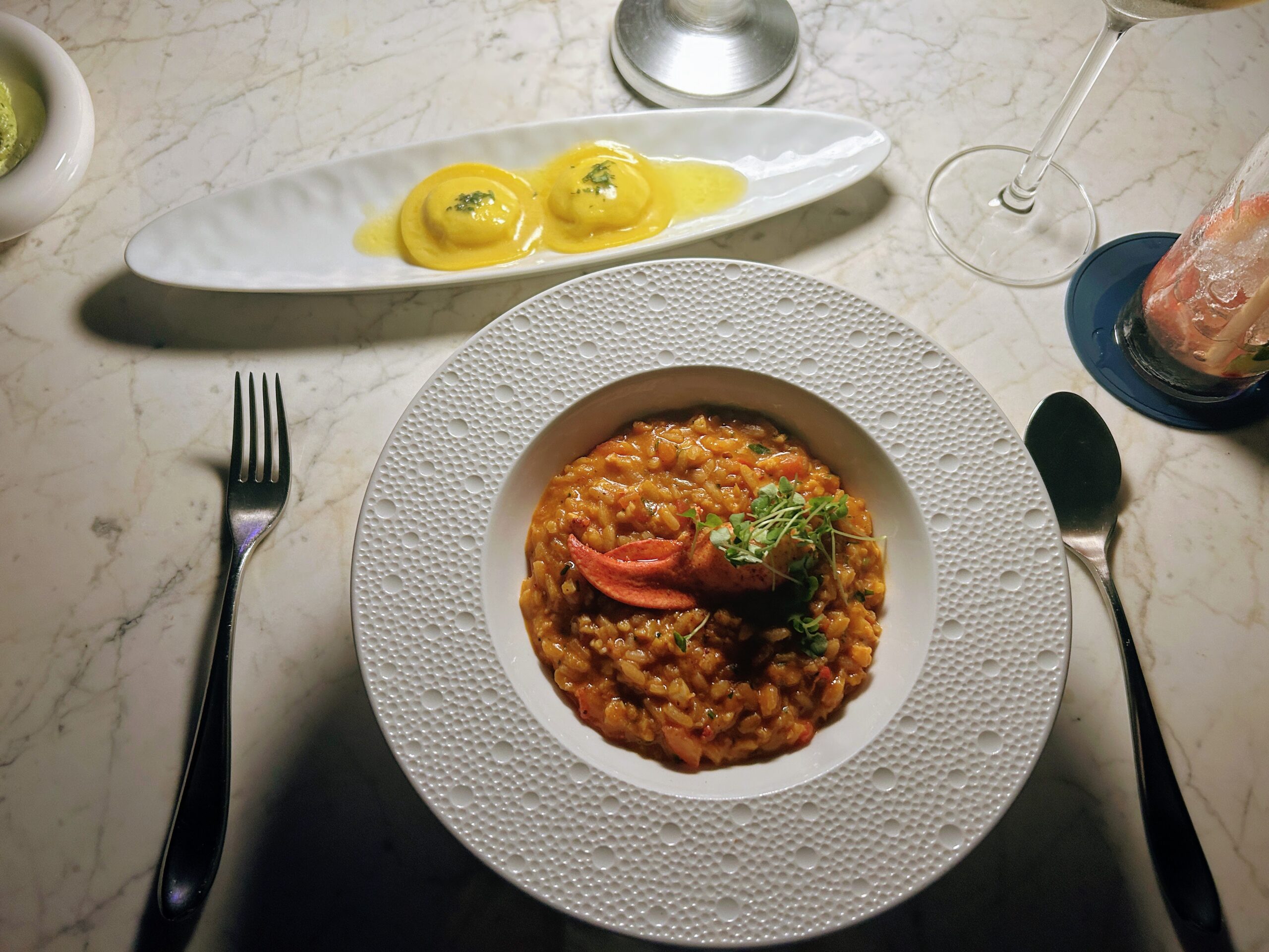 Rockfish is situated in the Jumeirah Al Naseem and has a stunning location facing the Burj Al Arab, right by the sea. The tasting menu was very good value at £100pp for such a prime location, as the portions were huge. It included langoustine, lobster risotto and some gorgeous sashimi. The dessert, a tiramisu came in a cereal bowl-sized portion that I could only manage half of, delicious as it was. I’ll be doing a more detailed review for Forbes shortly which I will link to.