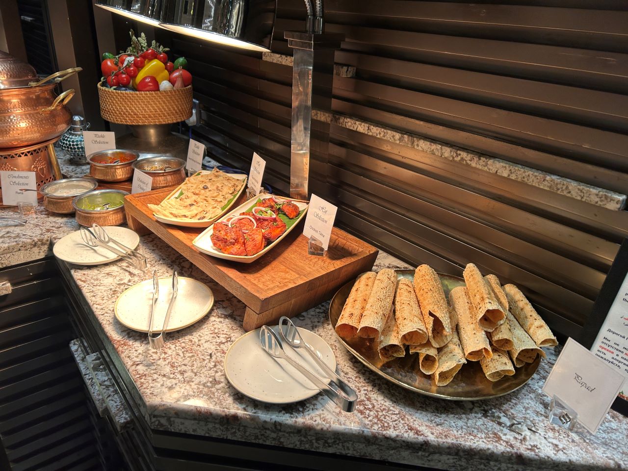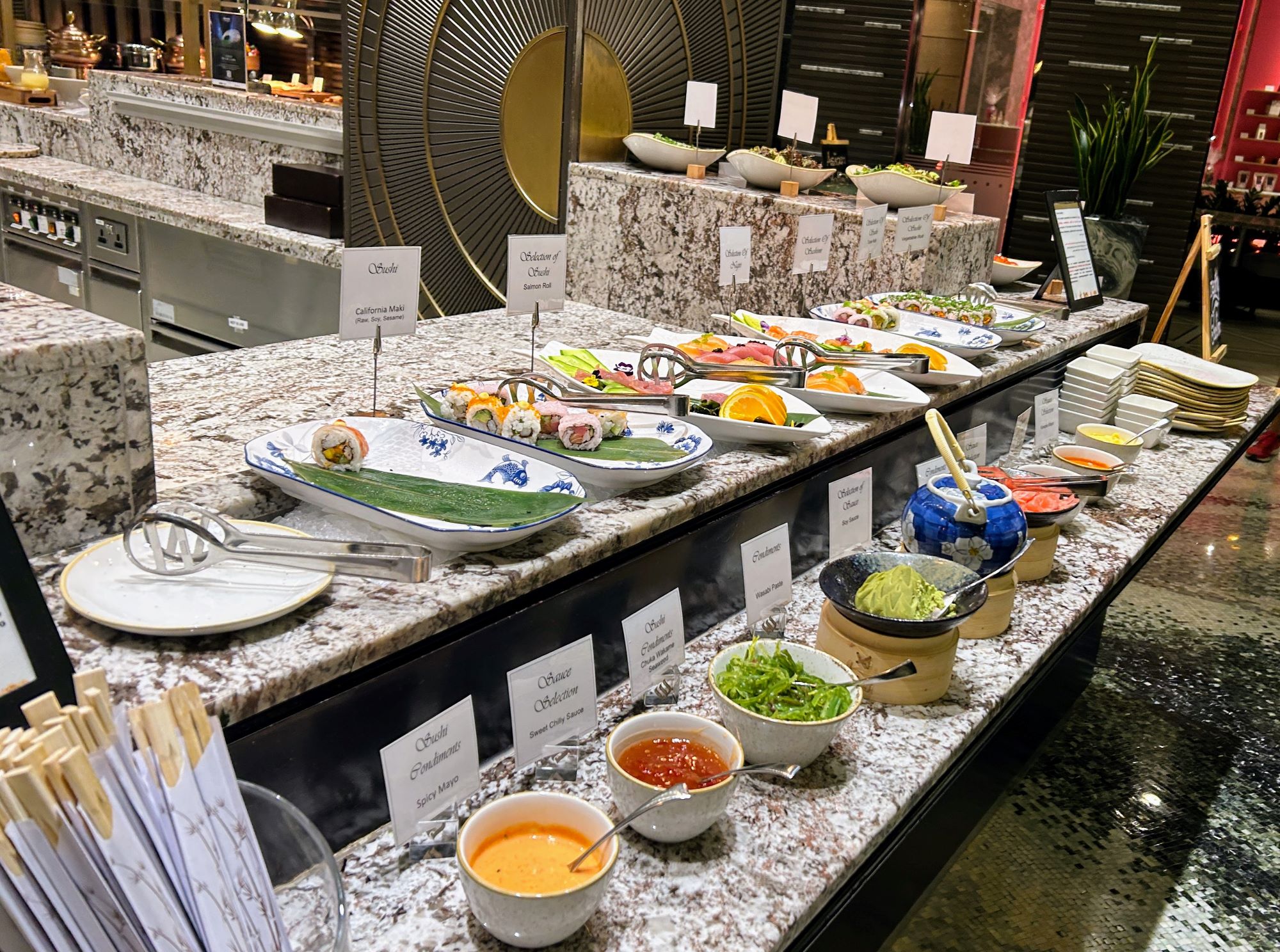 While in Dubai there is a plethora of options to choose from. However, sometimes you want a quiet night in the hotel or don’t know what you fancy. This is where a hotel buffet can be a great idea. Often in many countries, the buffets can be poor, whereas in Dubai, they are normally more of the Las Vegas style with lots of variety and high-quality food. I tried the Mundo restaurant for dinner.