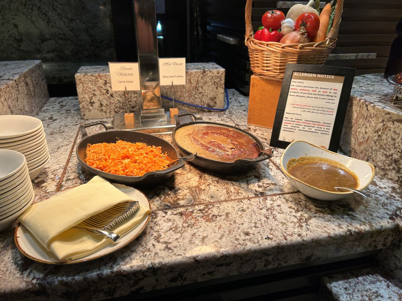 I was certainly spoilt for choice with food from around the world, such as beautifully fresh sashimi and sushi, Chinese stir fry, Indian curry, local specialities such as hummus, moutabel and Arabic bread and some more international option such as roast beef and salads.