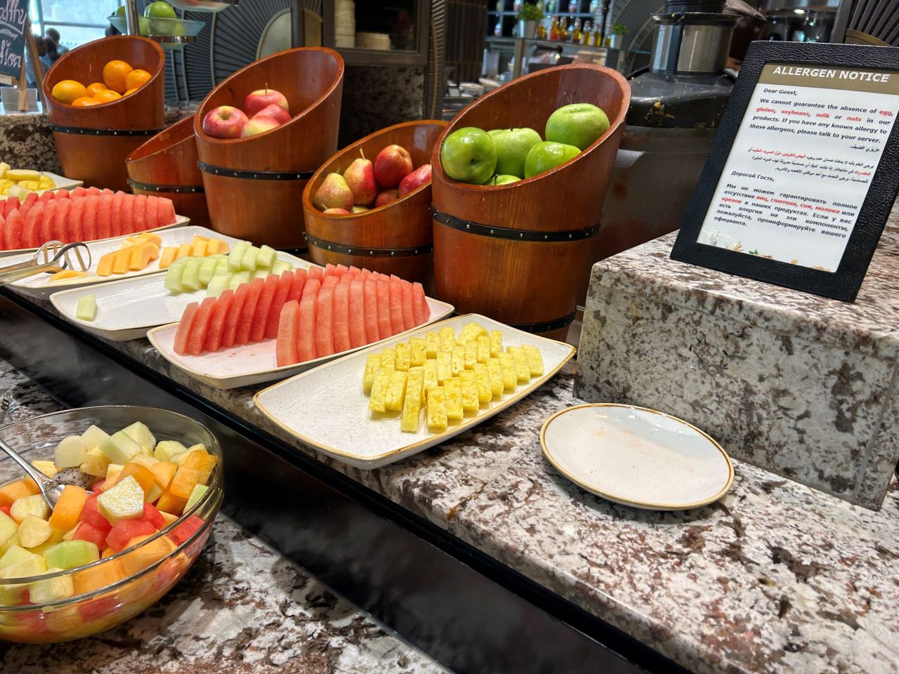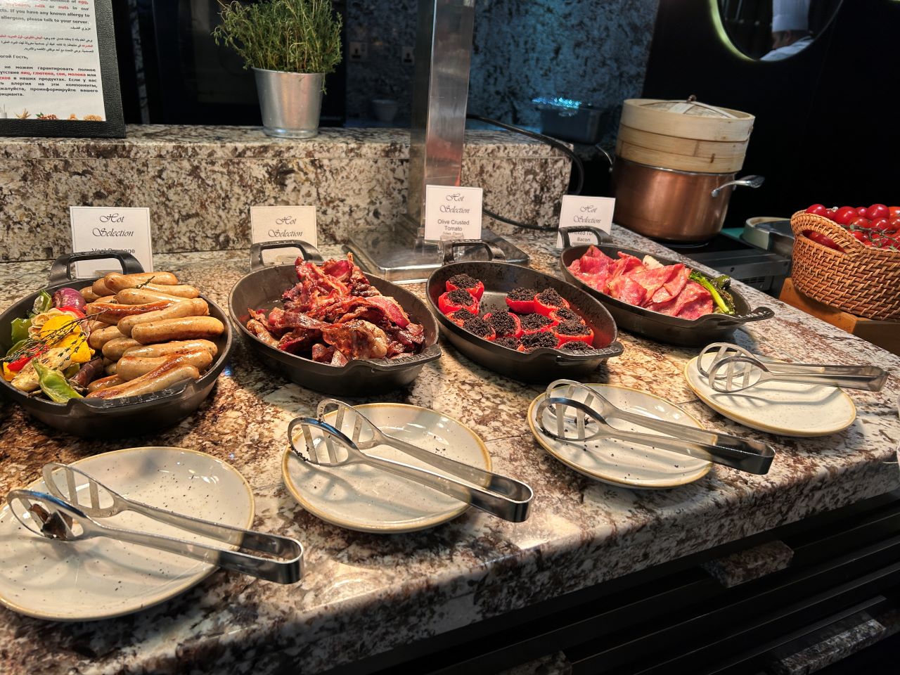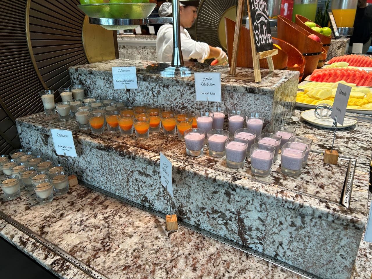 I am probably a bit odd in that I really like something different for breakfast, such as curry or dim sum. However, if you wanted to stick to traditional breakfast items, there was everything from healthy yoghurts or smoothies and fruit to a full English (minus the pork). I also enjoyed the traditional Arabic breakfast, such as foul medames and hummus.