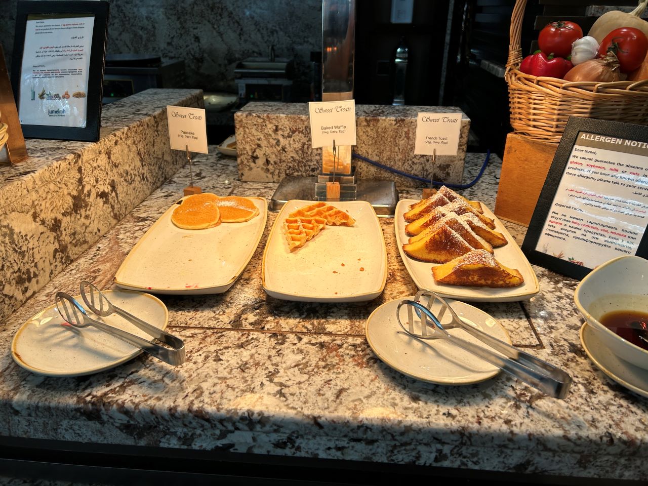 Breakfast was also served in the Mundo restaurant, and although it may look smaller than some of Dubai’s large hotel buffets, it packed a lot in. This was my favourite breakfast of the trip due to the wide selection of great quality food, helpful and attentive staff as well as the fact that it was not too crowded. Like dinner, it had food from around the world.