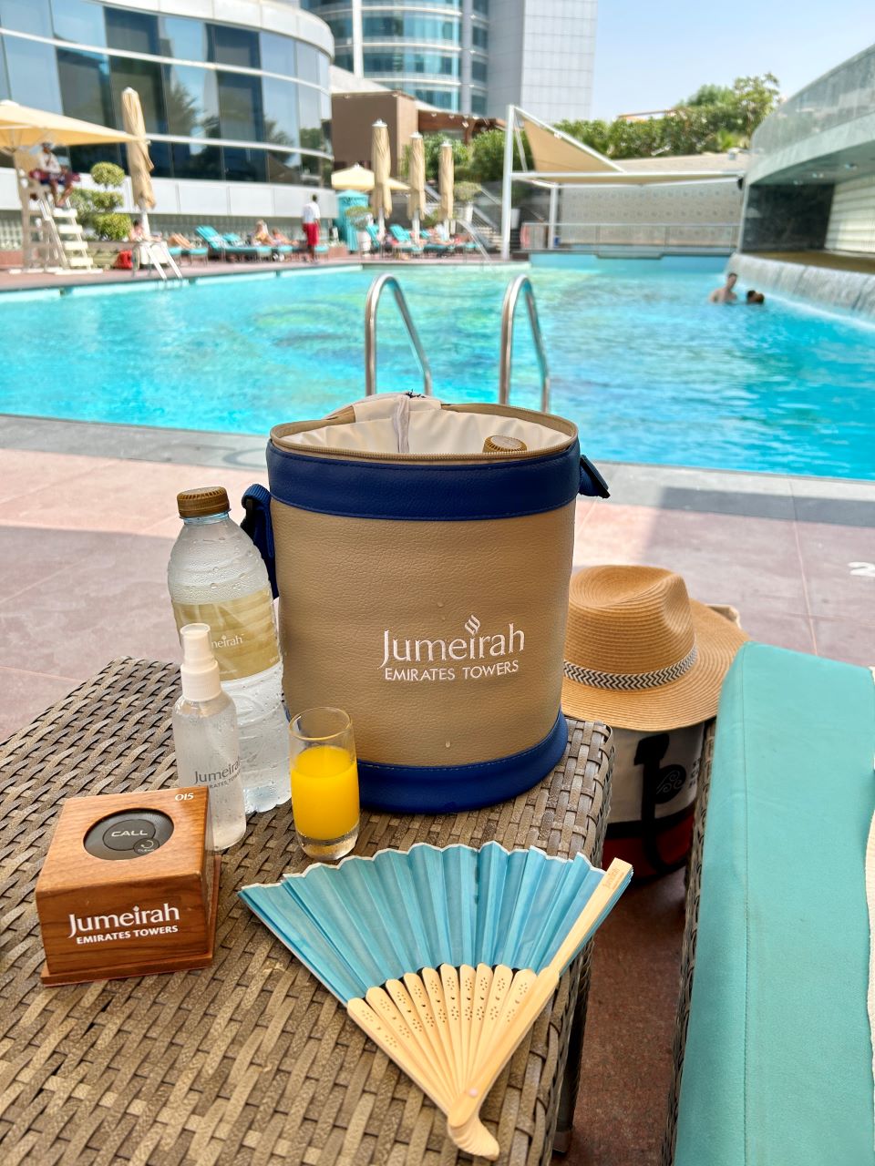 The pool looked much larger in real life than in the photos I had seen, and it was an enjoyable space. There was a bar area, and the pool attendants were there to assist if you needed anything. I particularly loved the little insulated bag that you received, which had everything you could need to chill out (quite literally) at the pool. You also were given cold towels which are great to drape round your neck to keep you cool.