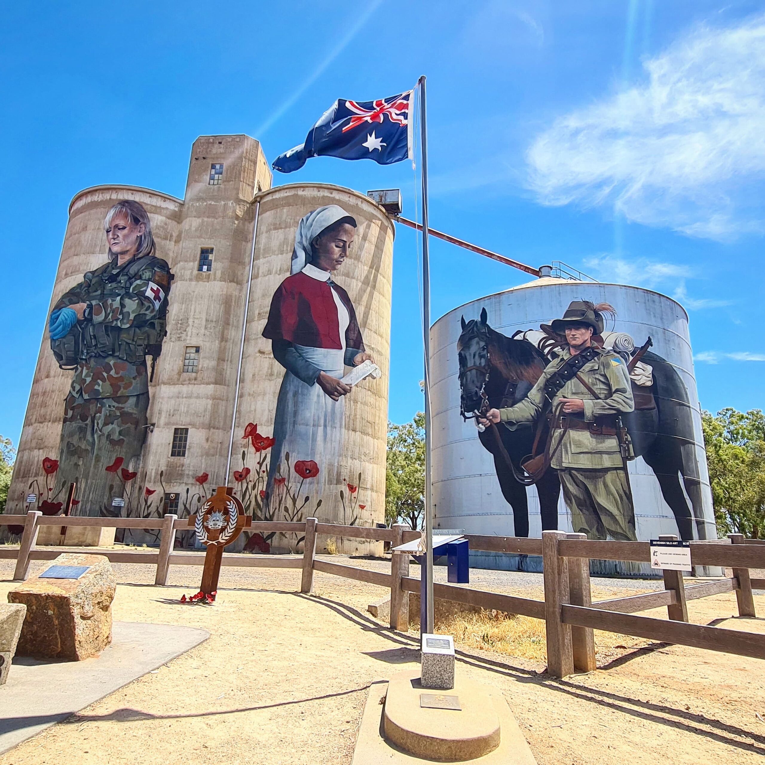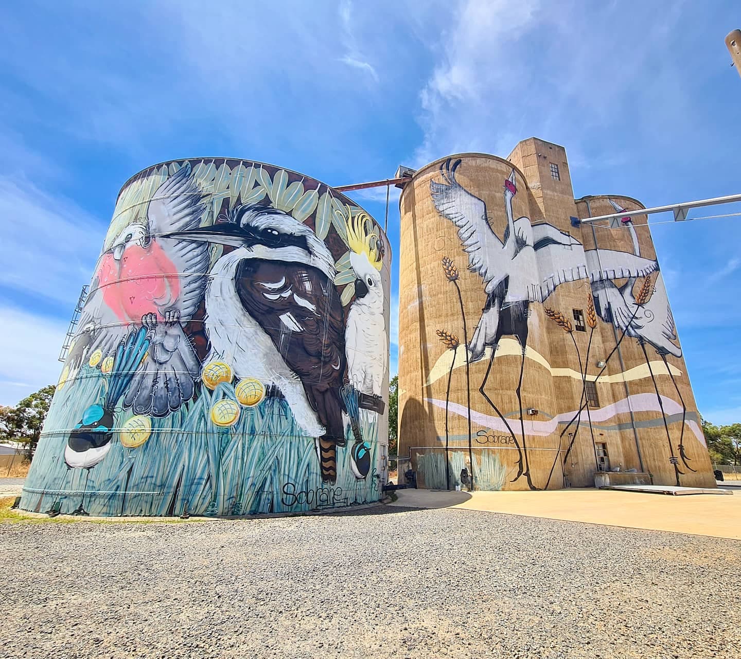 Scattered across the southern states of Victoria and South Australia, unsuspecting visitors may come across an unusual sort of art gallery – in the middle of farms and industrial towns, giant paintings grace the sides of wheat and grain silos.