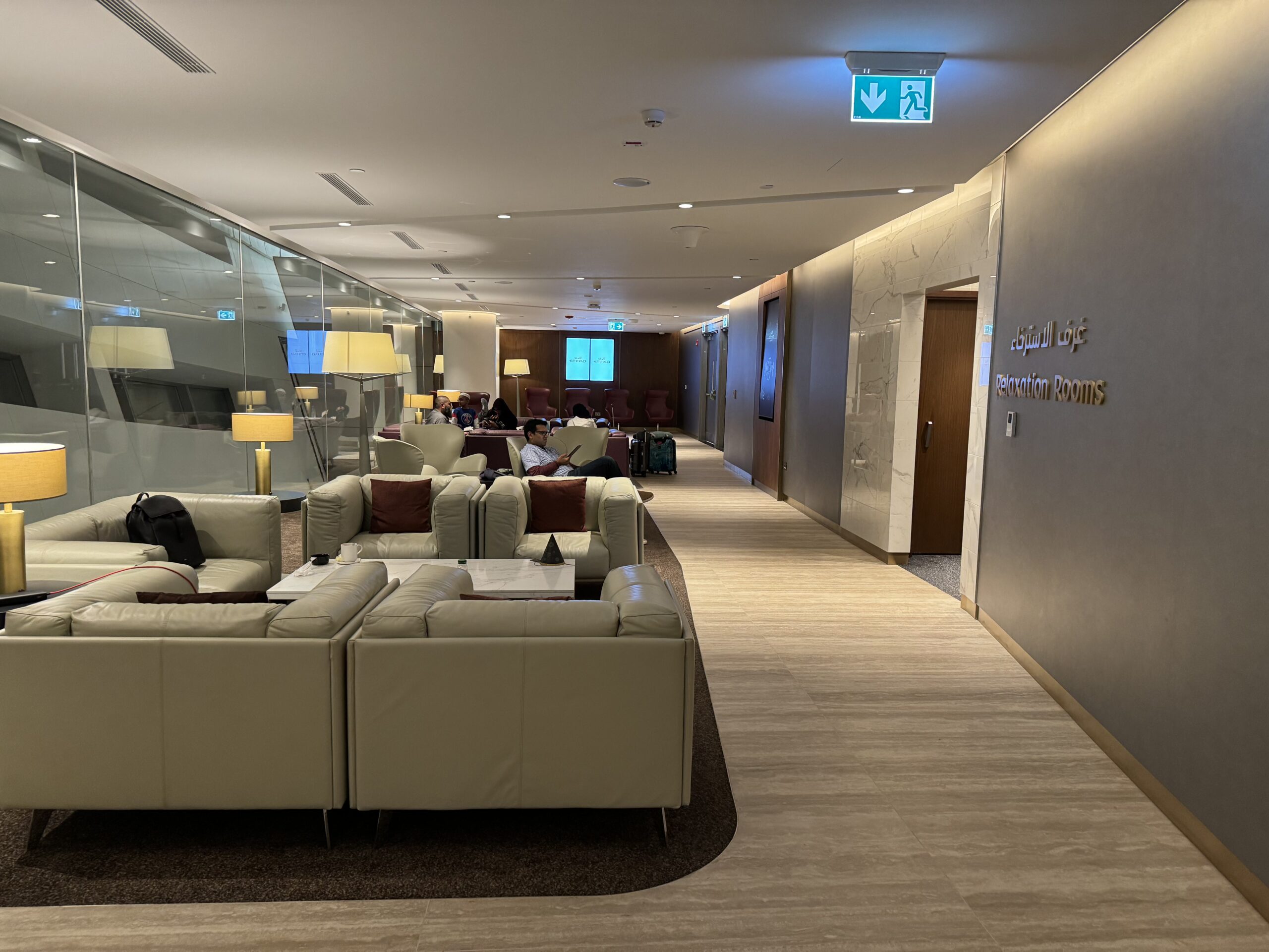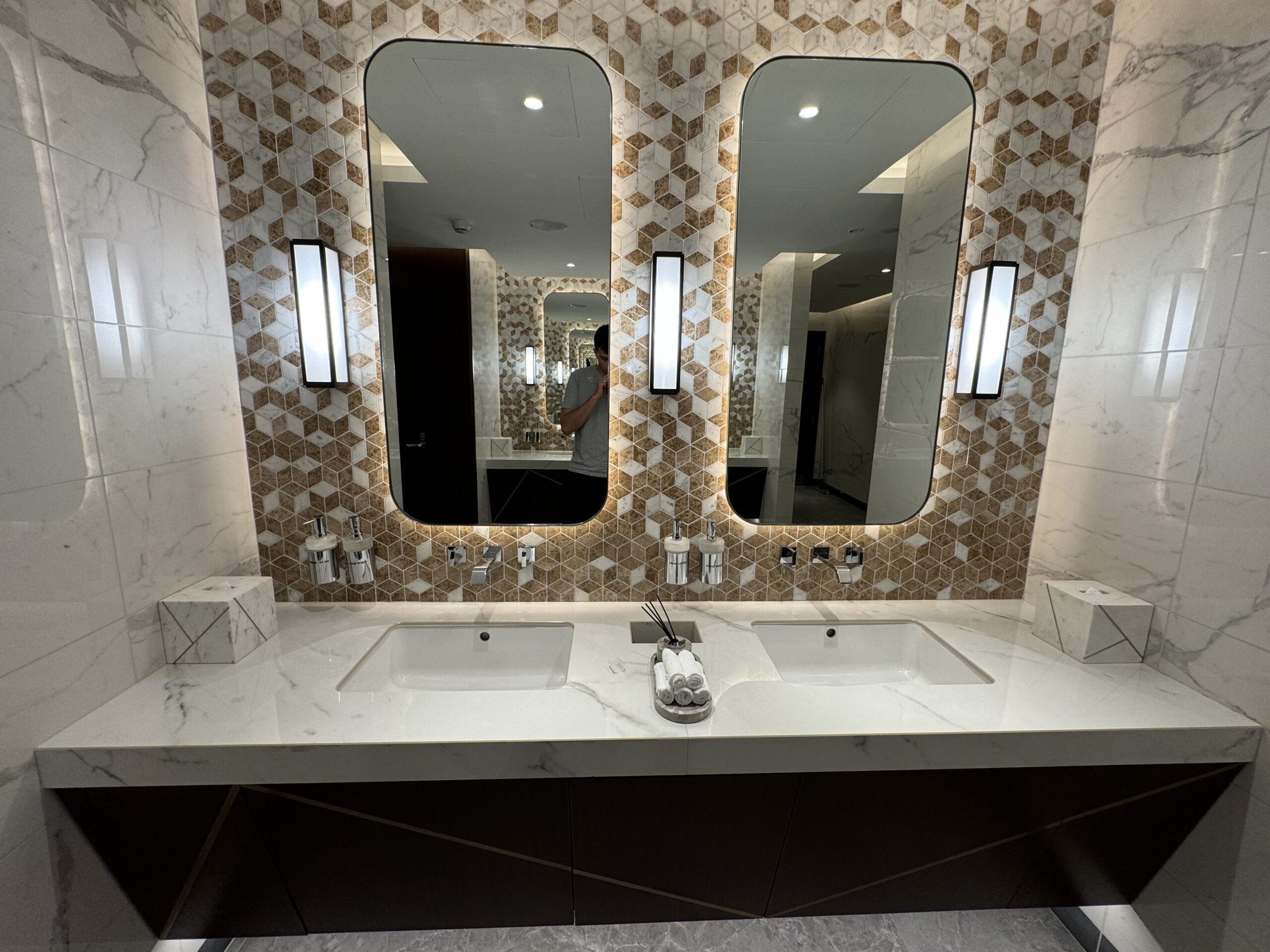 A case in point comes from there being two banks of showers on the middle floor. One set, where the signs point towards had a lengthy wait – yet we then walked just a minute on the same floor to find the other bank deserted. This signage issue isn’t unique to this lounge or airport though, with others in the region – notably Doha Hamad’s poor signage being another example.