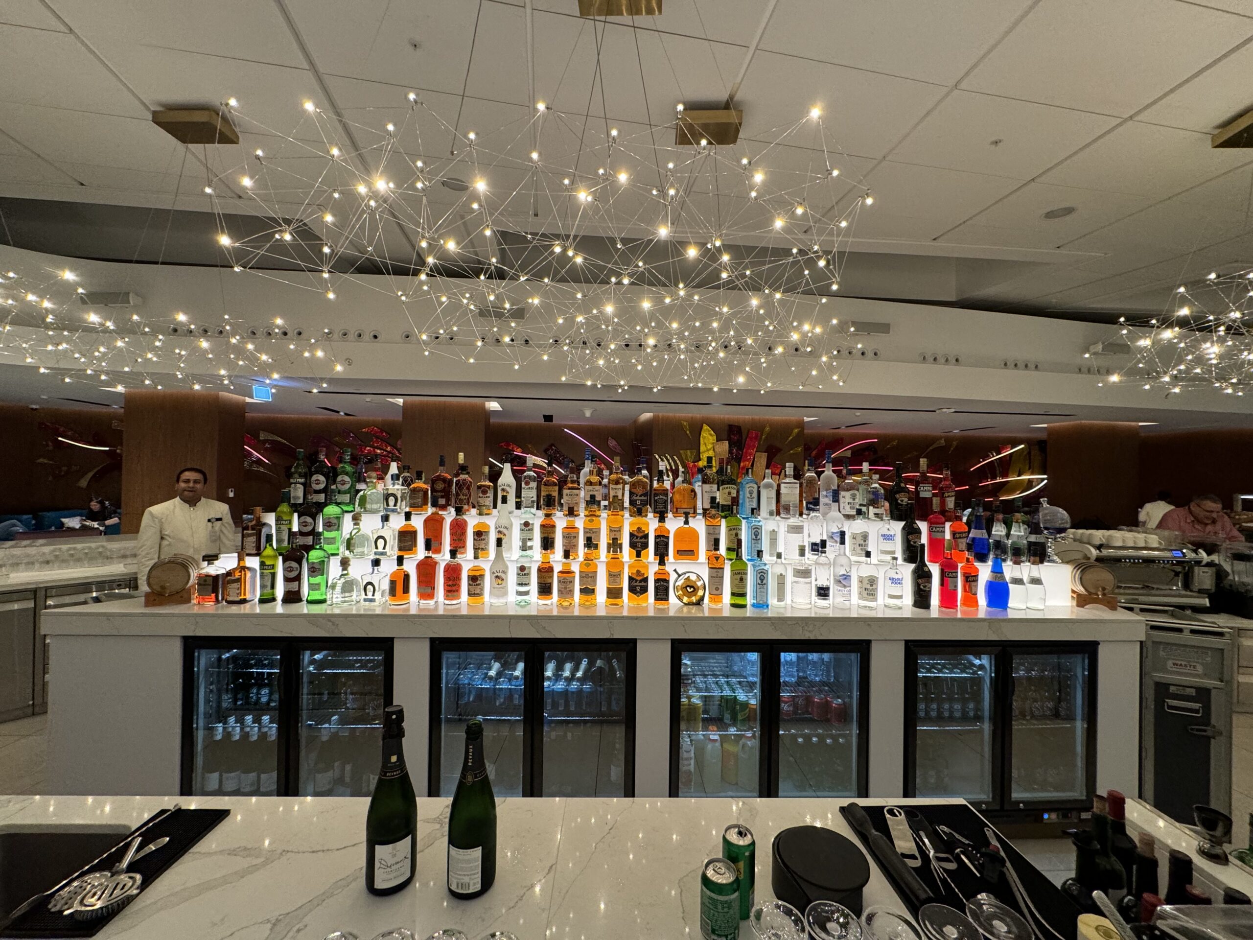 As a contrast, the top floor again features a buffet offering many of the similar dishes but also has a centrepiece bar. It’s a beautiful looking bar and is a nice place to spend time. Here’s the full range of spirits on offer – there are some noteworthy spirits such as The Botanist gin however the selection doesn’t feel the most premium.