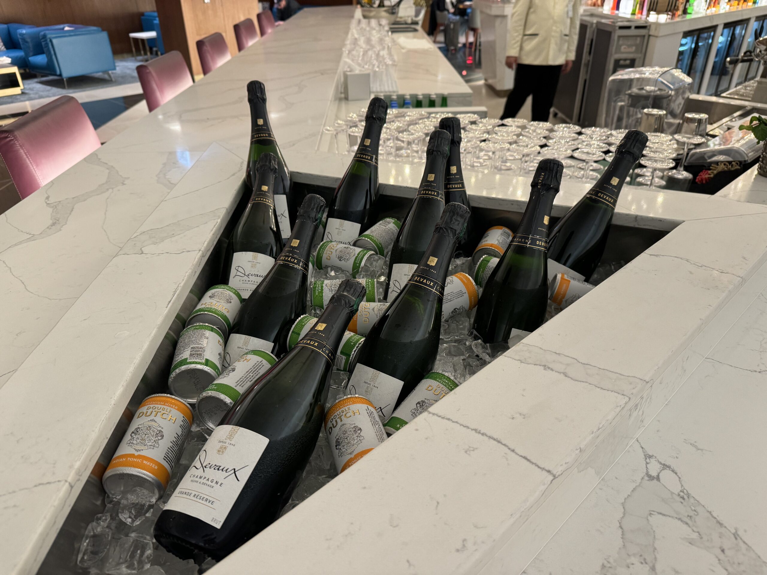 Across the whole lounge, two champagnes were offered including Duval Leroy and Devaux Grand Réserve. Both tasted good to me, but I am certainly not a wine connoisseur.