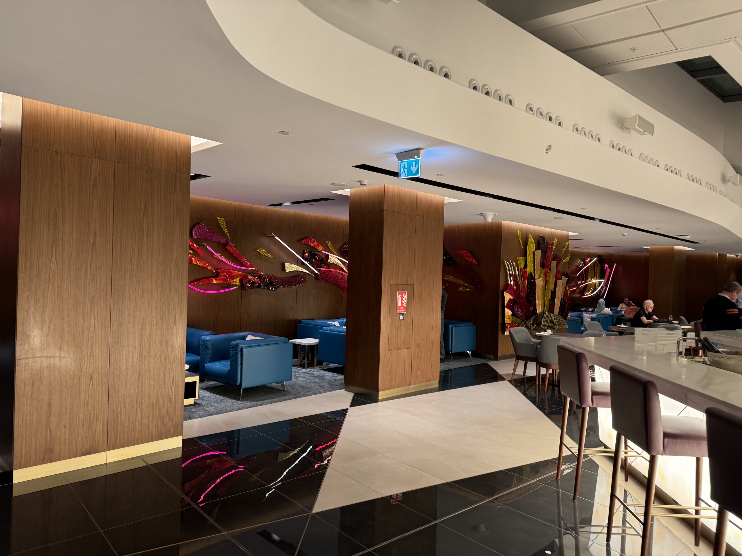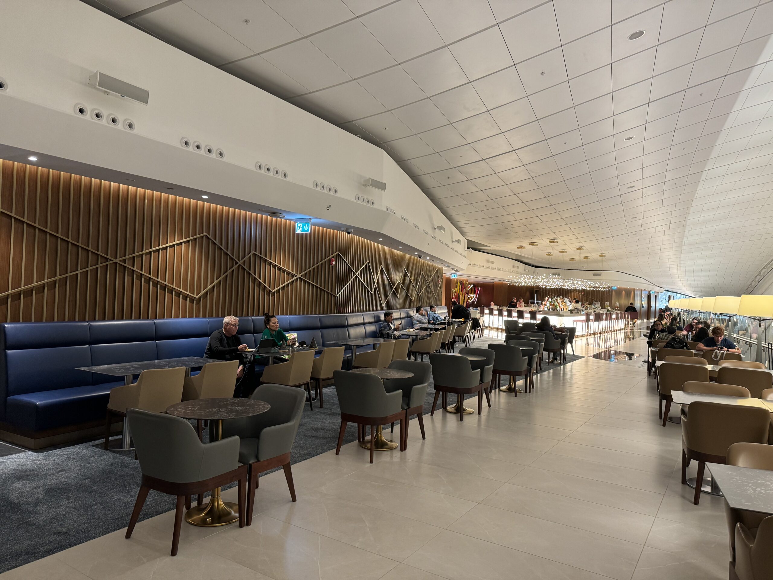 The airline has got a lot right with this lounge. Tasty food and drinks, a comfortable choice of seating, great showers, and lots of space. I can easily recommend it, even though areas for improvement should be noted (such as poor signage!).