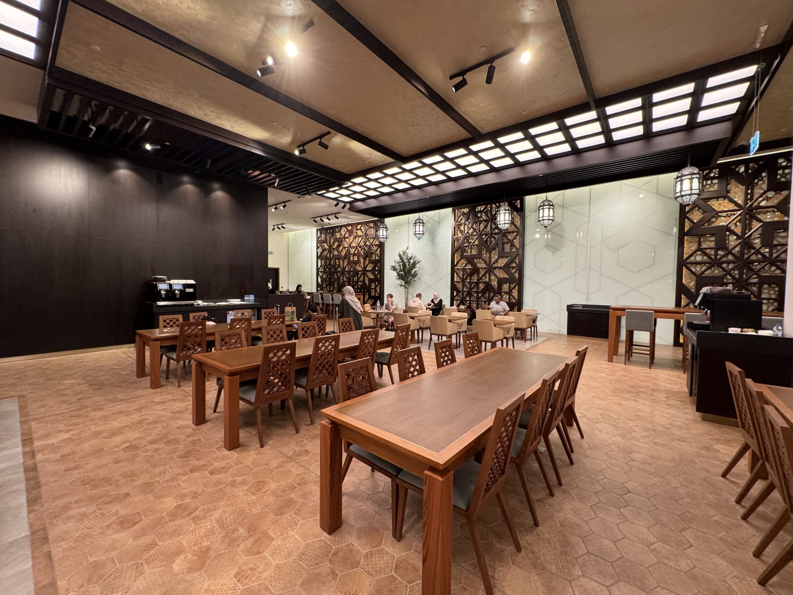 I didn’t manage to get too many pictures of the serving stations, but the breadth of food was good. Like the Pearl Lounge, there is a bias towards South Asian food but with a little more variety including Emirati dishes. Flavours were great and it was just a bit below Qatar Airways’ Al Mourjan experience in Doha. What was quite nice about this dining area was the different feel it had that made it feel a bit closer to a dining experience in traditional Abu Dhabi – even if it was a sanitised airport lounge version.