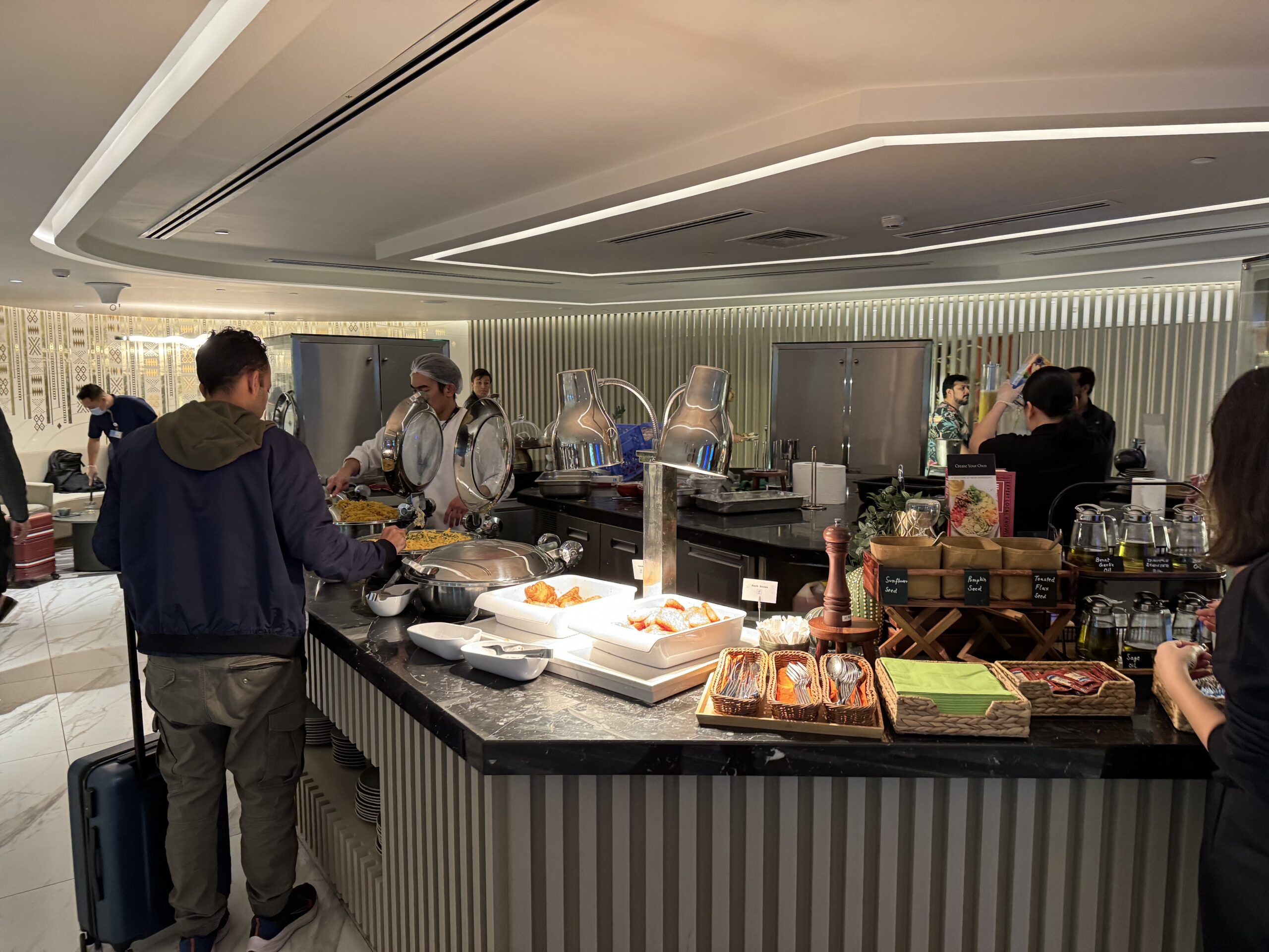 The Pearl Lounge is split into key zones – interior and ‘terrace’. Starting with the inside area you immediately realise how low the ceilings are here despite the lounge being quite large. Most people tend to congregate around the buffet close to the entrance, resulting in the place feeling hectic as people return for food. Speaking of which, I thought it was some of the better Priority Pass lounge food I’ve had. With a heavy South Asian influence, most of the items stayed warm well without drying out or losing flavour.