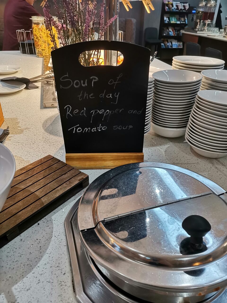 My starter was soup. It was delivered on its own small tray – again lovely presentation I thought. But it was, well judge for yourself –