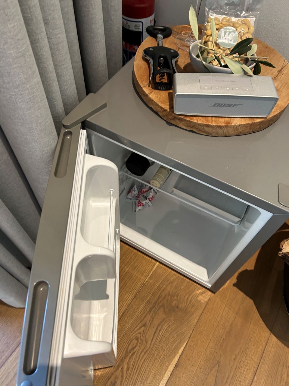You enter into the main shared area of the house, which has an honesty bar with a variety of high-quality wines, beers, spirits and soft drinks at very reasonable prices to enjoy in the lounge, your room or by the pool. You simply make a note in the book.