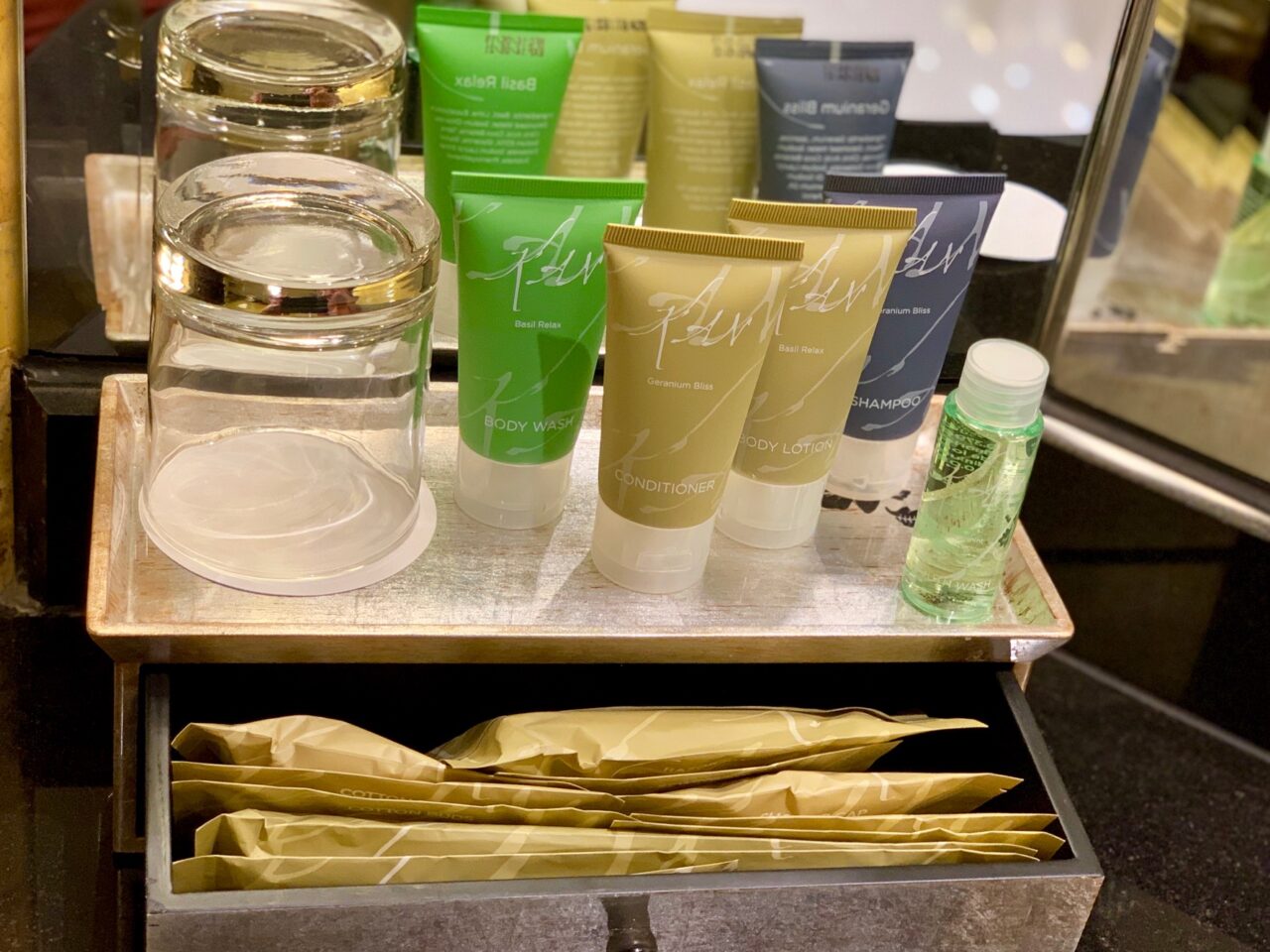 The toiletries, shampoo, liquid soap and conditioner were from the KAN range. There was also mouthwash and a box with a host of other products such as bathtubs, cotton swabs and nail file.