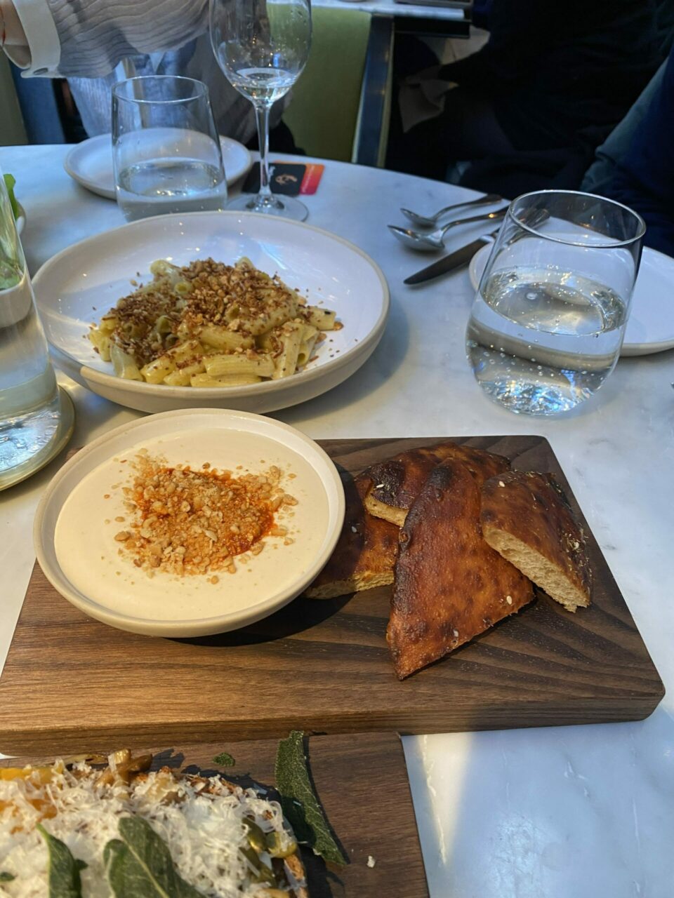 As it was lunchtime I was keen to try the chicken, but maybe not the full free courses. So I went for the signature Chicken Truffle instead. Before that we tried a selection of starters including the hummus, the mushroom and the rigatoni. The standout for me was the mushroom which had a lovely hit of salty parmesan to offset the woody mushrooms and the fresh sage really lifted the plain ricotta.