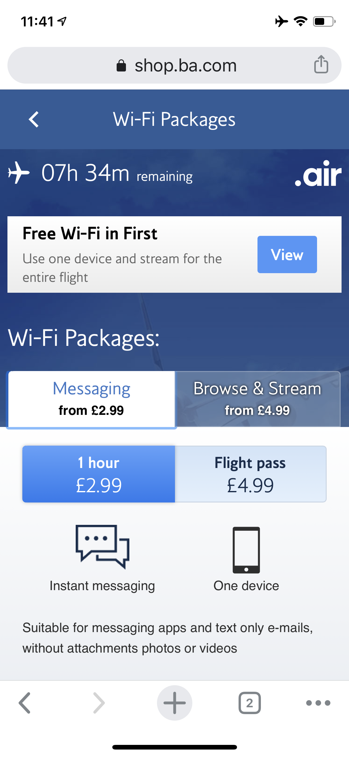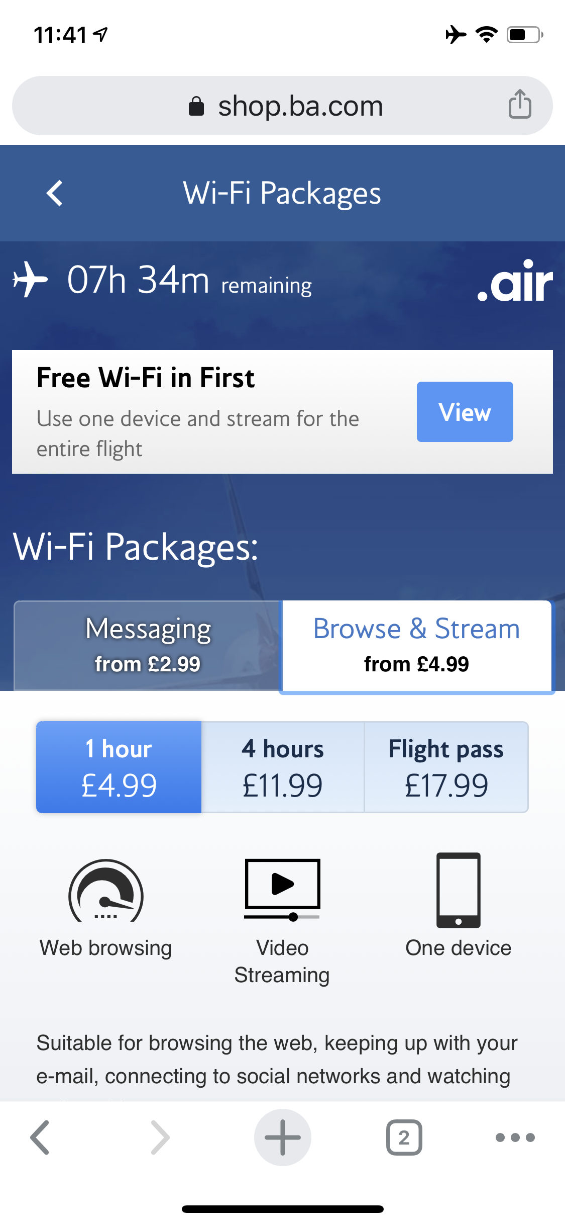 Sadly even the faster “Browse and stream” seemed to be struggling on this flight and I found it hard to even use “What’s app” at times but I did still manage to post some social media and read some emails.