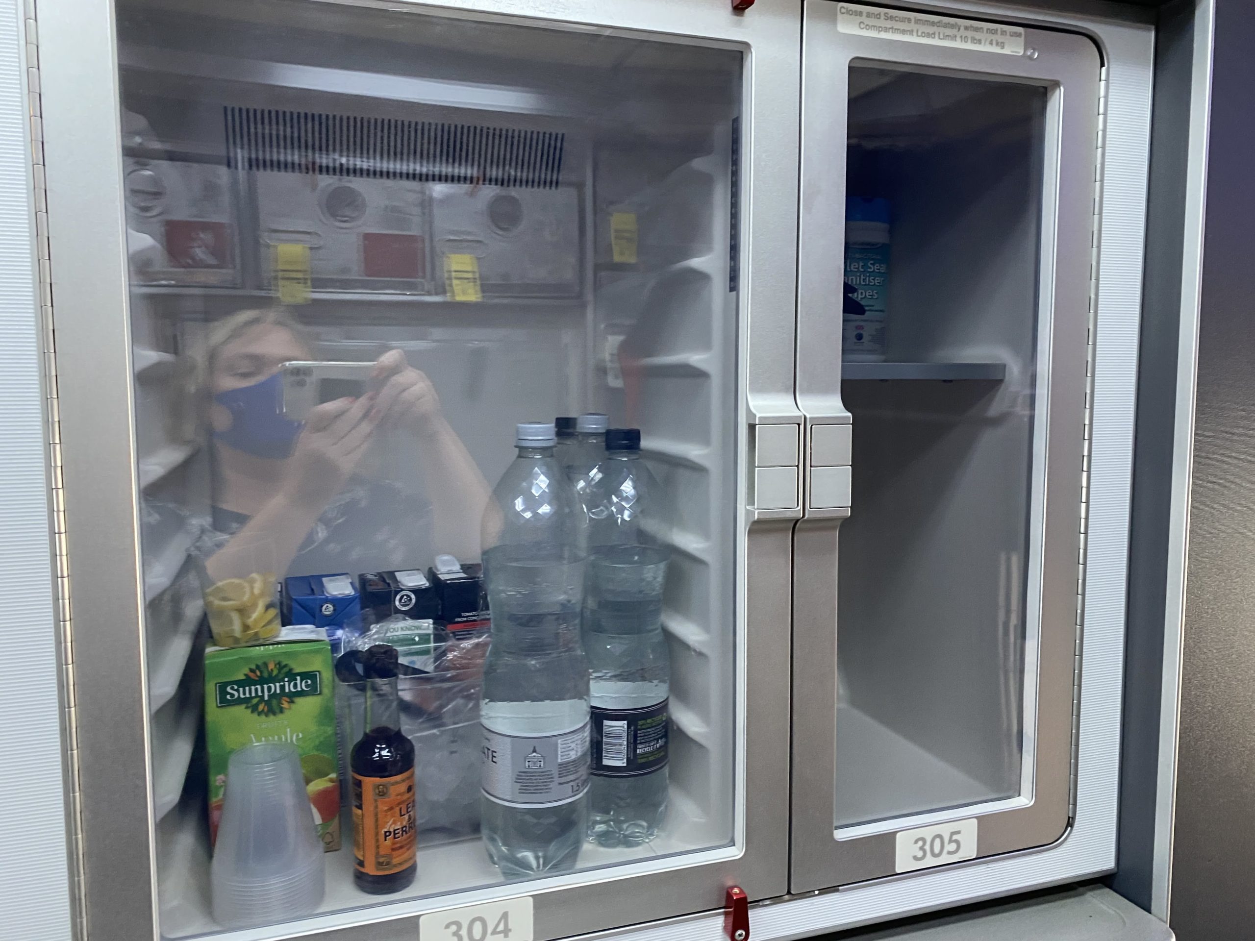 As I suspected one of the maskless group was sitting next to me. This did make me very uncomfortable. I had a chat with the CSM and there was only one other seat available which was an aisle in the middle of the cabin. I decided that in terms of odds, I was probably better off in my little corner and just putting the screen up as soon as I could and keeping my mask on as much as possible. The yin/yang of the old seats are not great for this situation since you are directly facing someone, and I would not have been at all worried in the new Club Suites with the distance between seats.