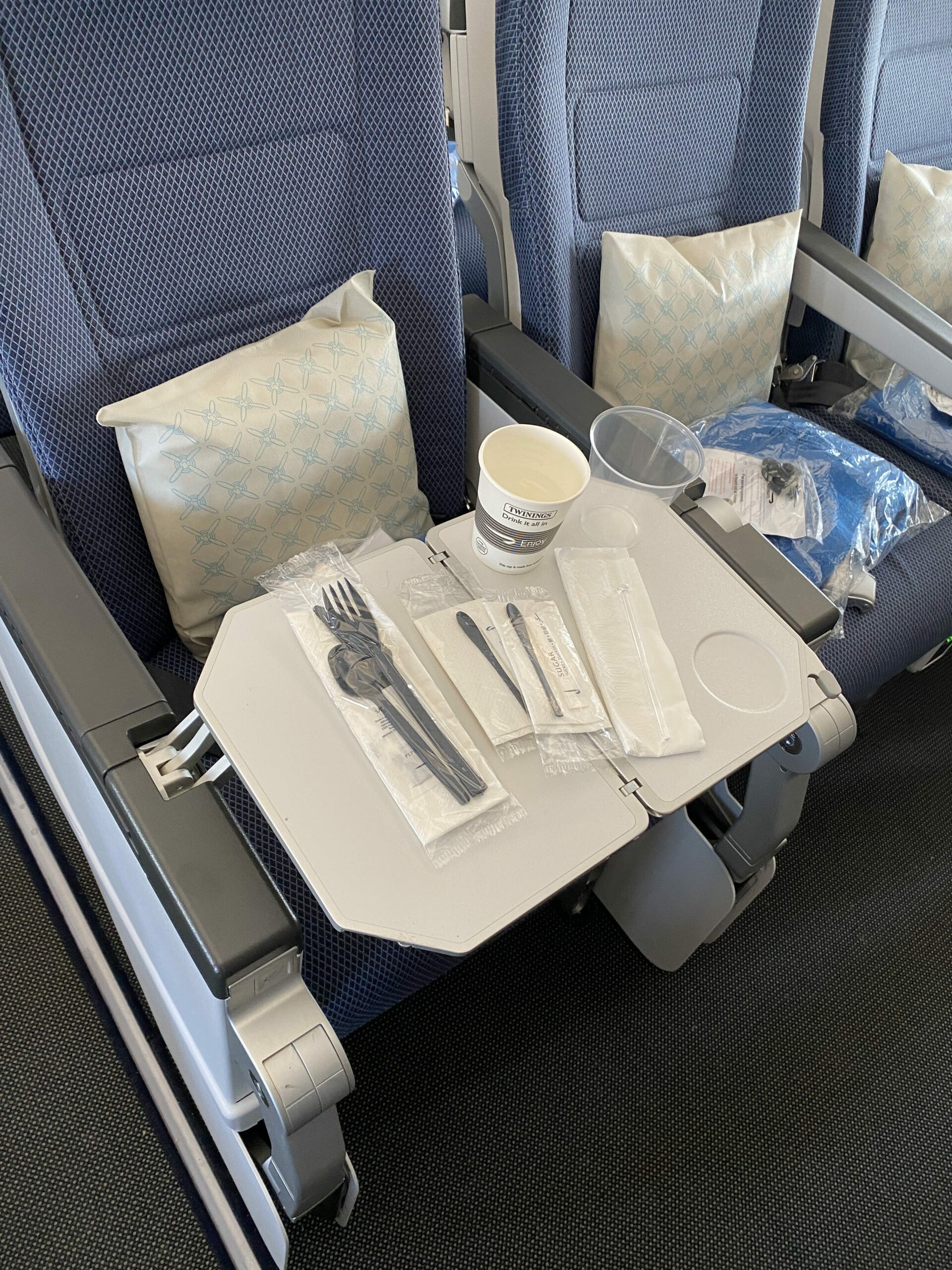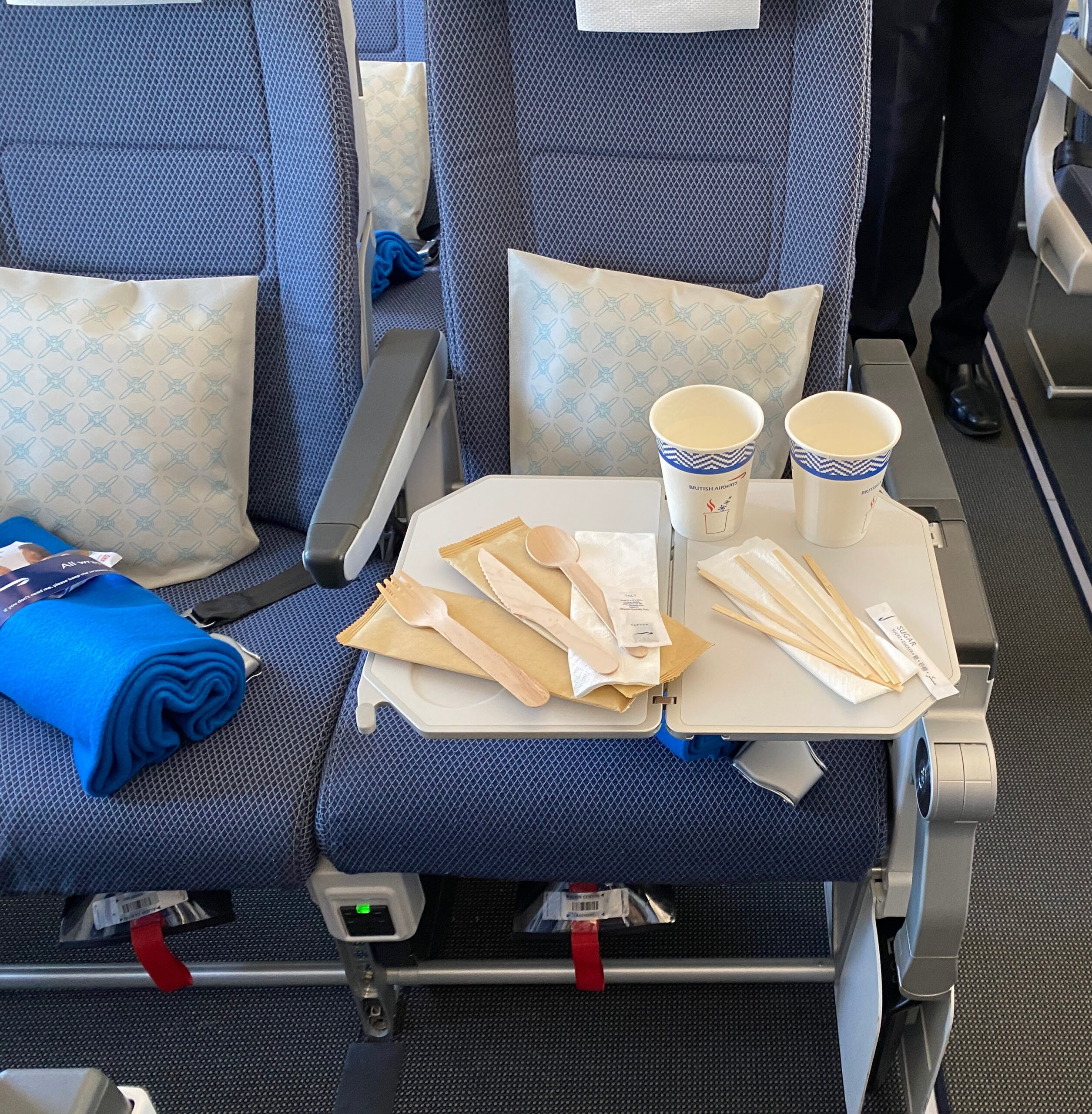 In World Traveller Plus and Club World, the emphasis is on reducing plastic wrapping for blankets and headphones. The new packaging is live on World Traveller Plus and hopefully will follow shortly. Instead of using plastic wrapping, a simple paper band keeps things tidy.