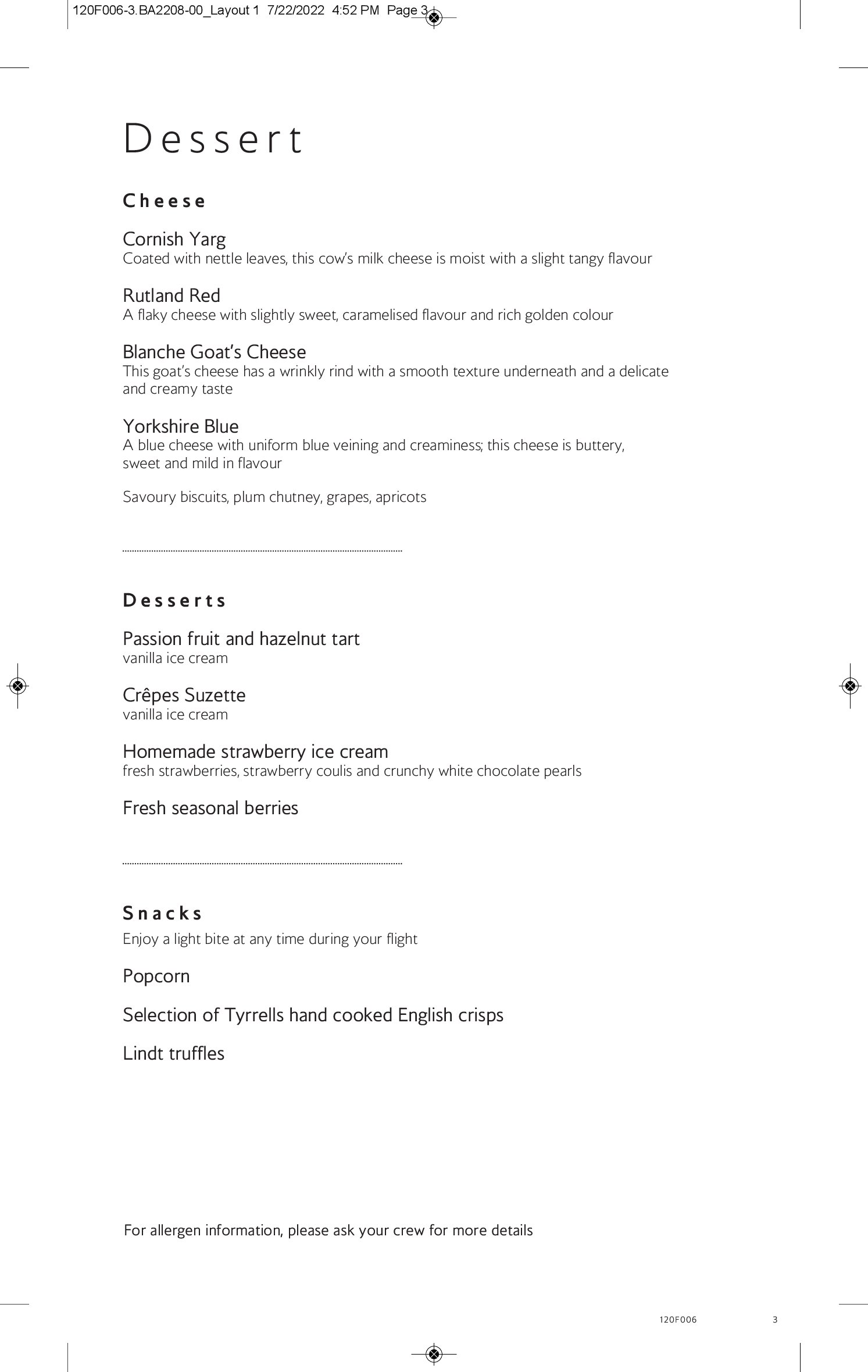 Dessert move a huge step forward. Group of 4 of us in First in April and they had classed ice cream and Lindor as deserts so the chocolate mouse was the only actual dessert – and they only had 3! Got 25,000 avios from my complaint though so alls fair in love and war!