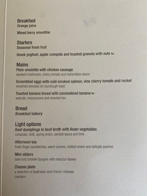 The food starter tray – notice that the only real change is that the tray has dessert on it as well plus the lid on the butter dish. Well done Qatar.