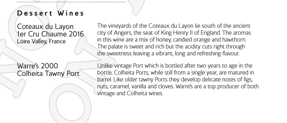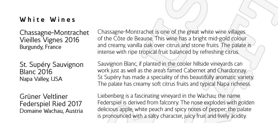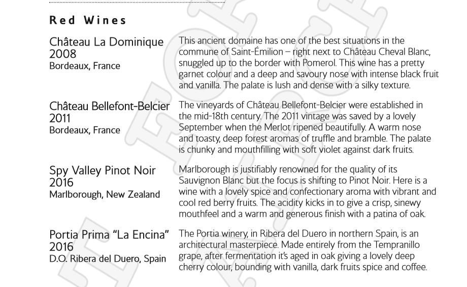 Here is the wine list: