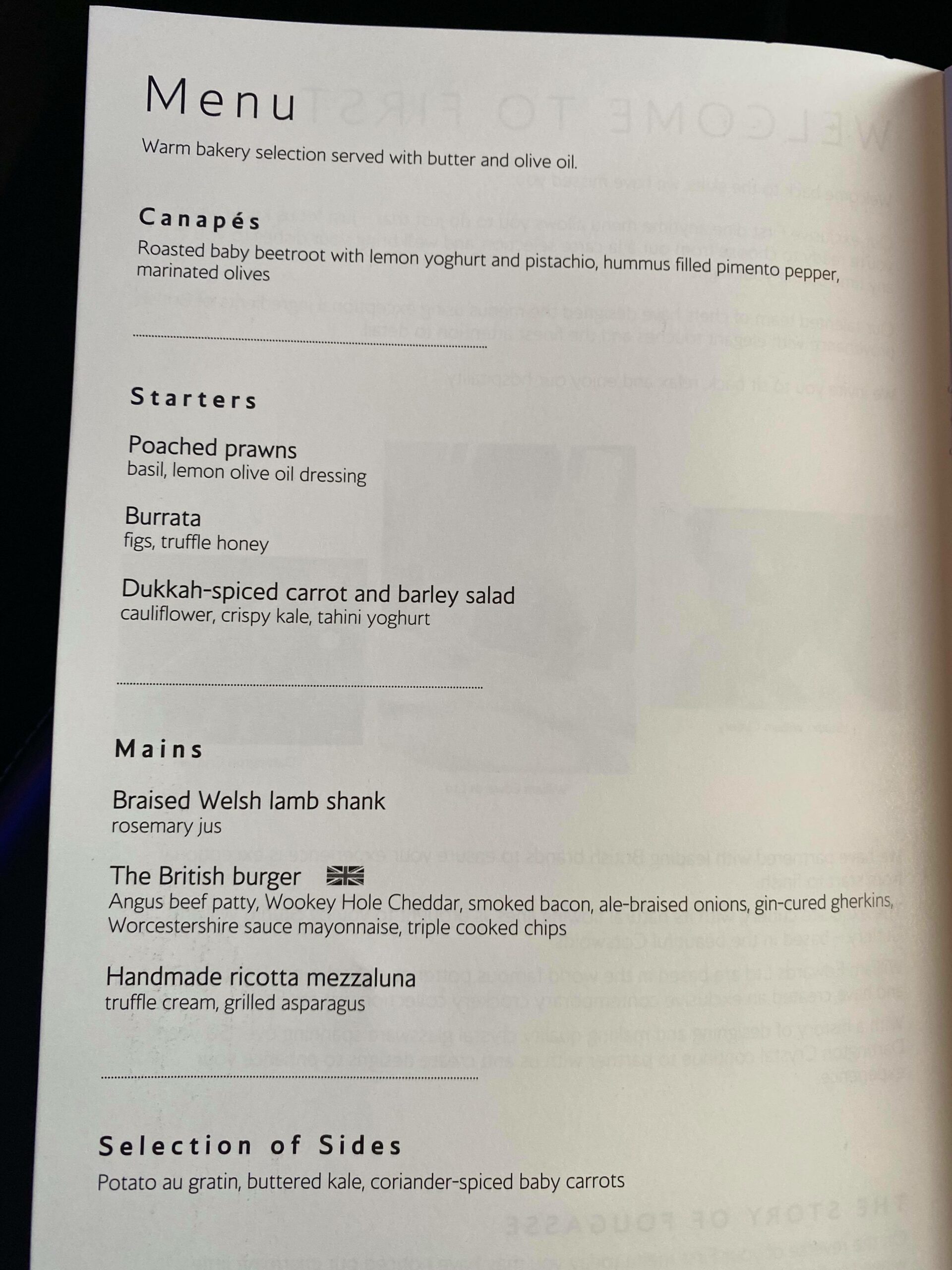 A few weeks ago BA introduced its new onboard menus with roast dinners etc and a general focus on British-themed meals. Just prior to the roasts, my friend flew First with BA and tried some of their more traditional British dishes. He enjoyed the food, but I still think this menu does not feel very “First class” to me. The burger always used to be a snack, and after last winter’s substantial meal rules, Scotch eggs are dead to me!