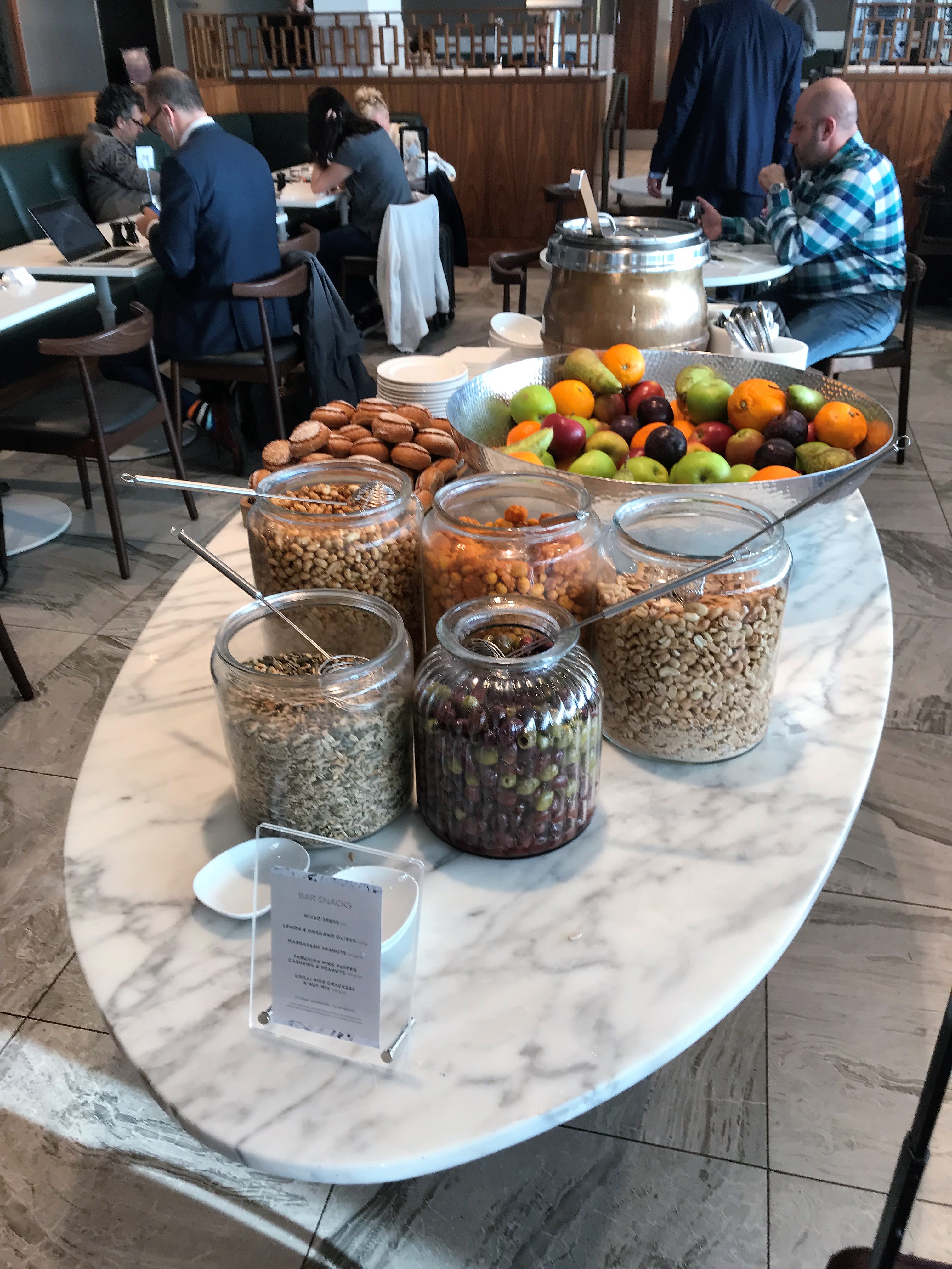 If you wanted soft drinks there was a fizzy drinks dispenser to help yourself to as well as still and sparkling water from a tap. Next to these were a few carafes of fruit juice too. There were also two coffee machines with the usual selection of latte, cappuccino etc plus various Twinings teas available.