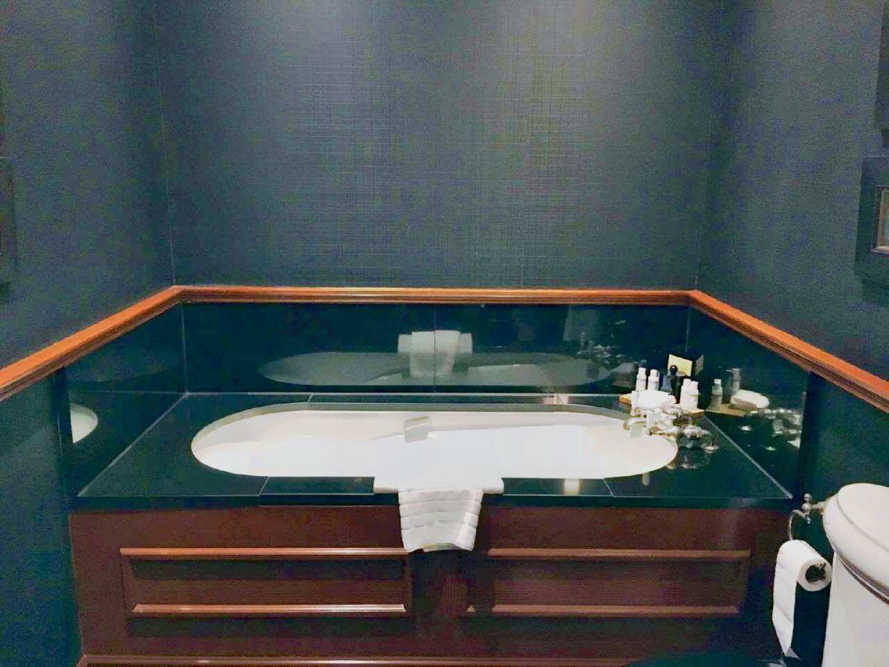 The bathroom was spacious, had a large deep bath and large shower. Toiletries were from REN.